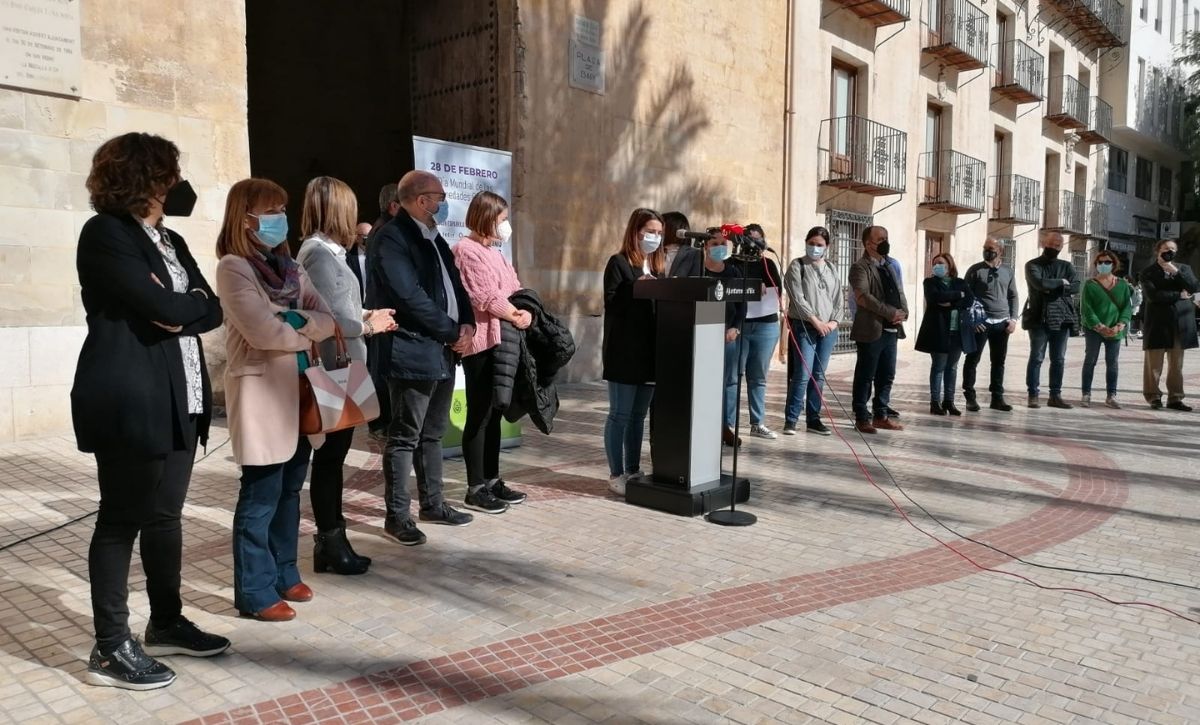 La edil de Sanidad, Mariola Galiana, junto a miembros del Equipo de Gobierno y de la Corporación Municipal y miembros de FEDER asisten a la lectura de un manifiesto en Plaza de Baix en el que se reivindica desde un impulso a la investigación hasta la promoción de una formación especializada