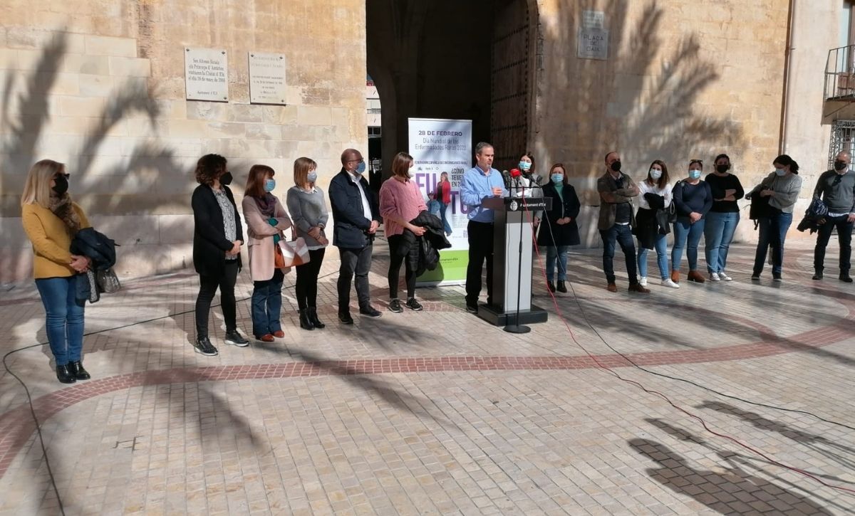 El Ayuntamiento de Elche ha apoyado a las personas afectadas por las Enfermedades Raras a través de la lectura de un manifiesto en Plaza de Baix con motivo del Día Mundial de las Enfermedades Raras para visibilizarlas y sensibilizar a la ciudadanía.