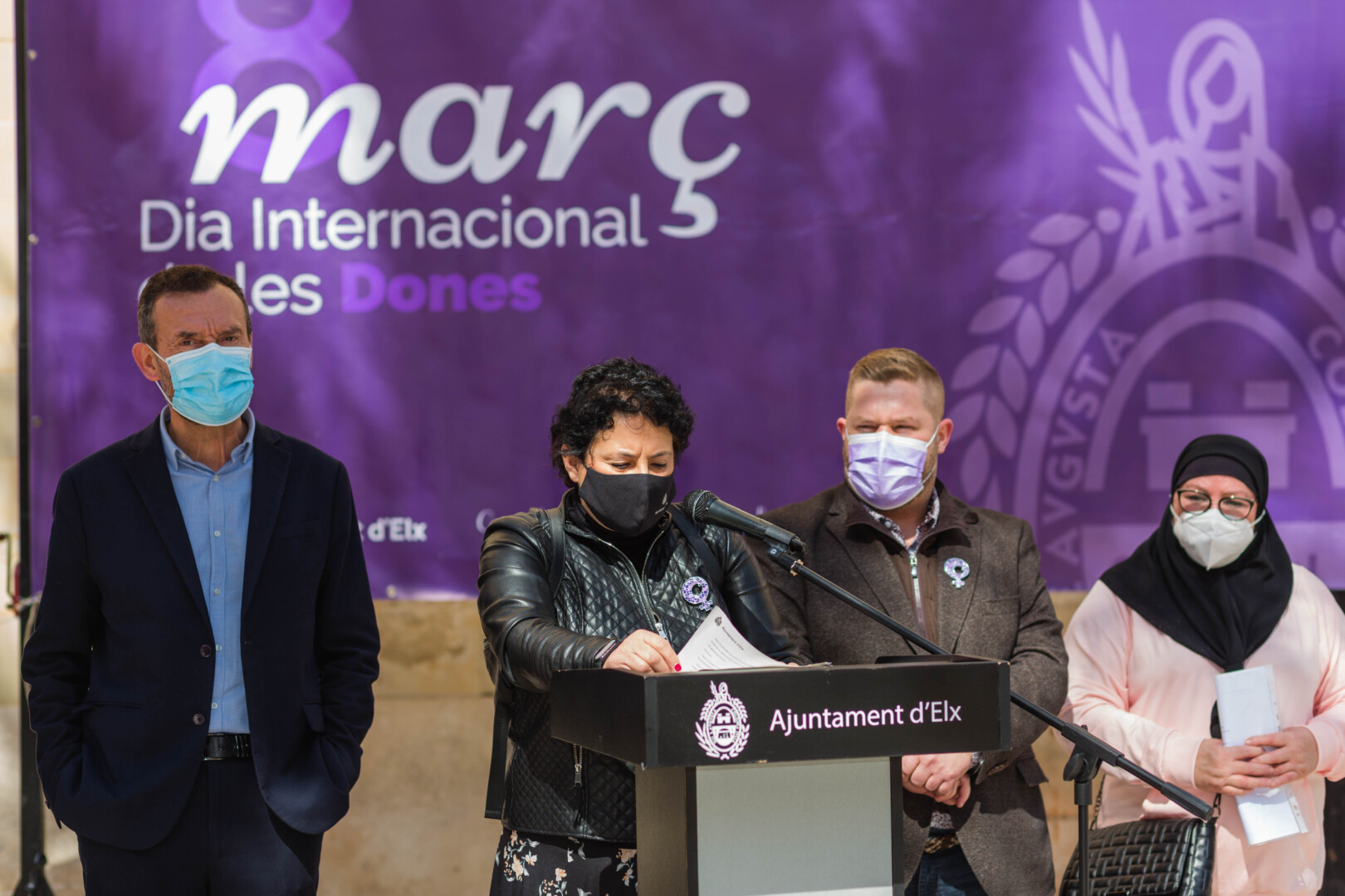 Valera ha señalado que “es absolutamente necesario que la sociedad en su conjunto trate y permita el ejercicio del pleno derecho a todas las mujeres”. Valera ha agradecido tanto la participación del instituto Montserrat Roig con su banda de música que trabaja desde la igualdad y la diversidad como la respuesta de la labor social que realizan Nuria Martínez, jefa de Servicios Sociales del Consistorio, y María Eugenia Bermúdez, presidenta del comedor social Al-Taufik, quienes han sido las encargadas de leer el manifiesto.