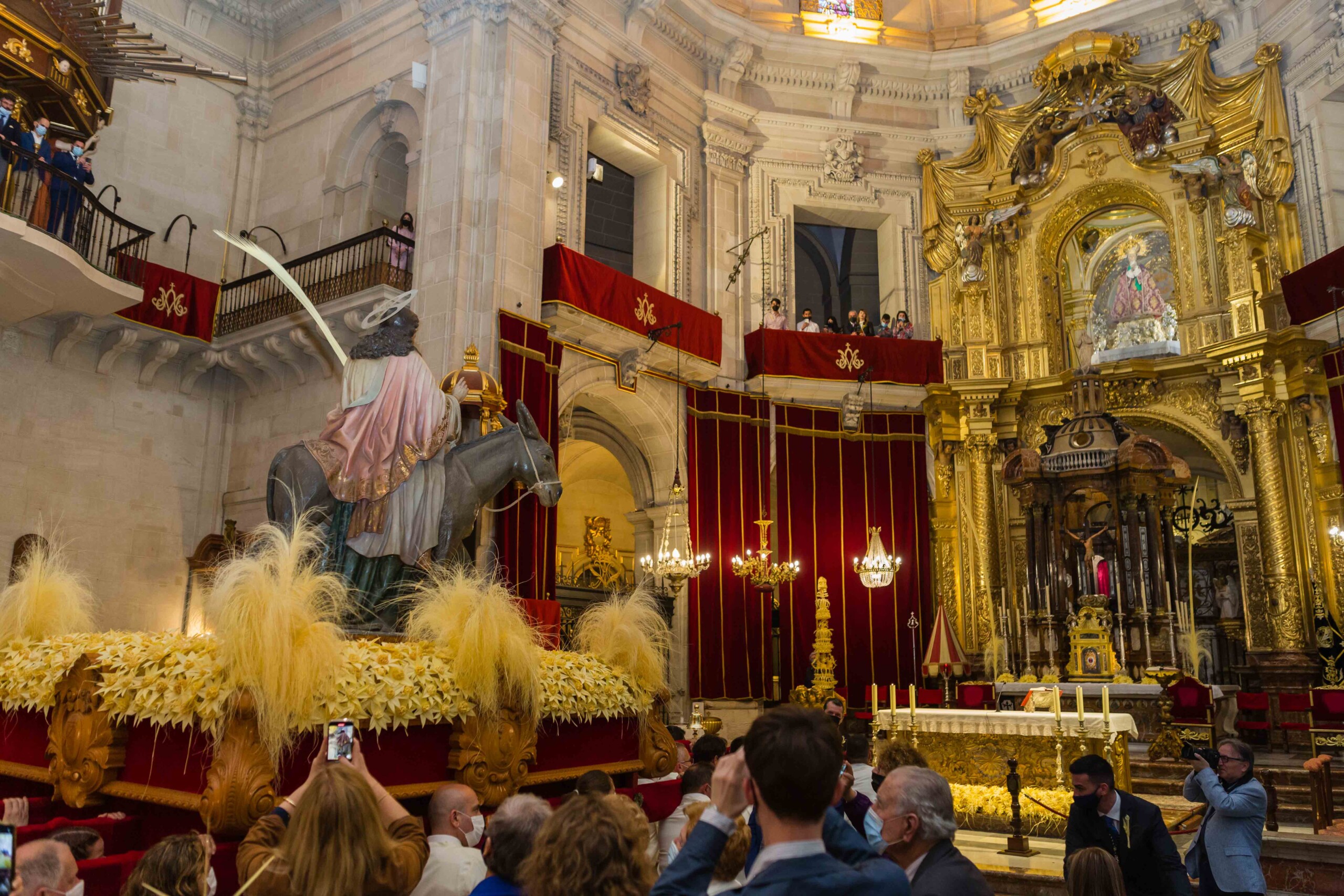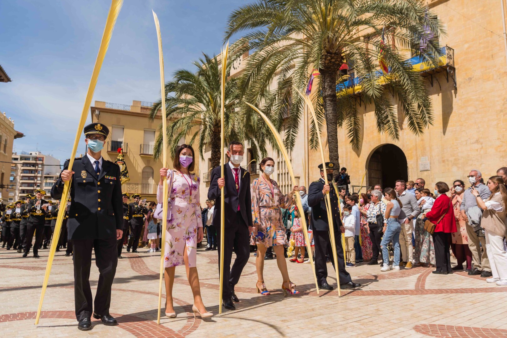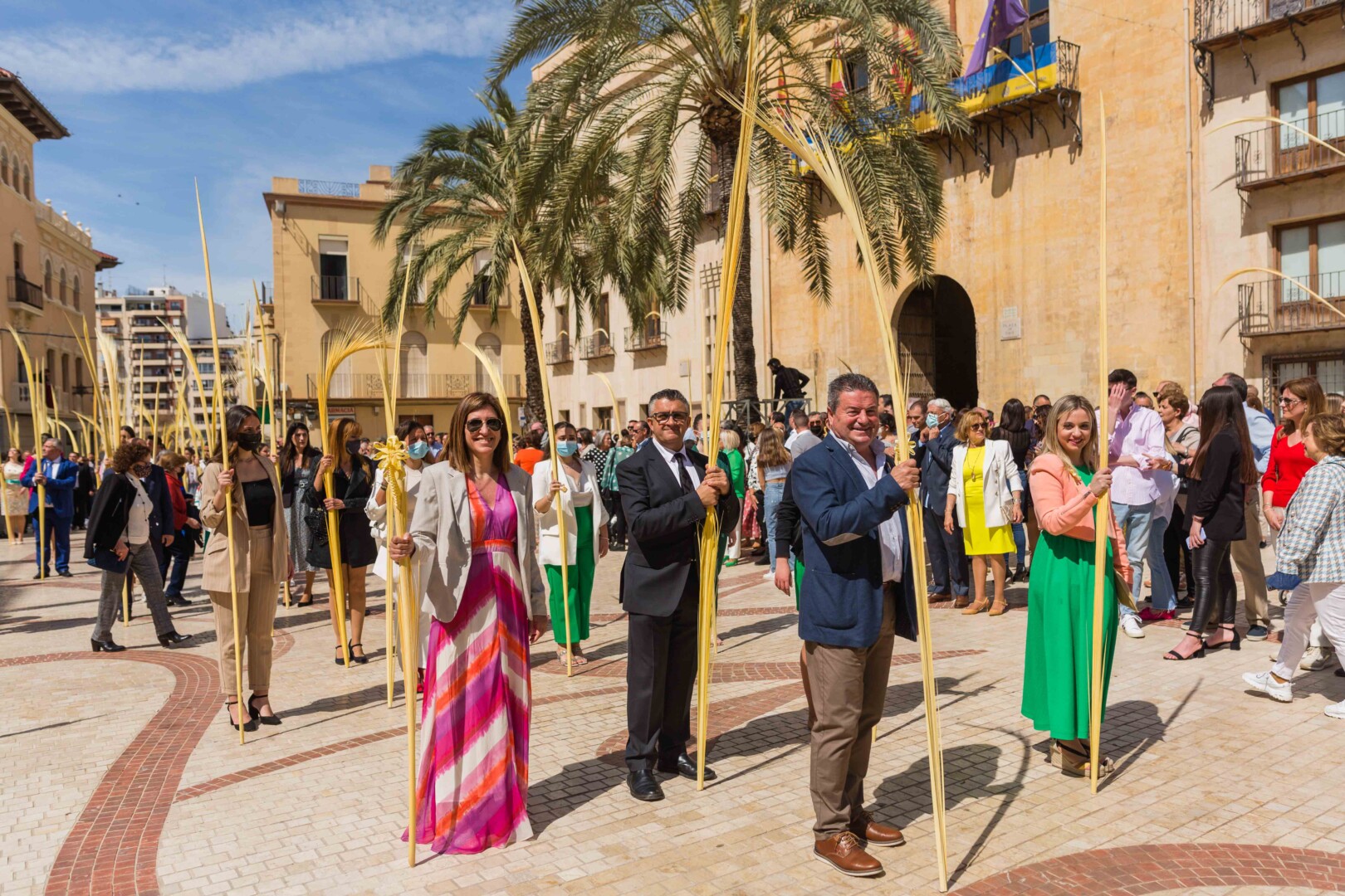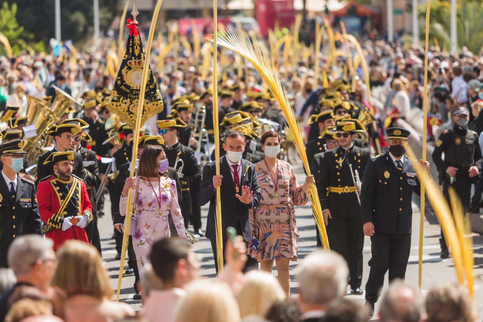 La Semana Santa ha vuelto a Elche tras dos años con un multitudinario Domingo de Ramos. La Procesión de Jesús Triunfante, Fiesta de Interés Turístico Internacional desde el 22 de julio de 1997, ha arrancado a las 11:00 horas en el Paseo de la Estación, congregando a unas 60.000 personas y pasando por algunos de los lugares más icónicos del centro de la ciudad en su recorrido hasta la basílica de Santa María. El alcalde, Carlos González, la edil de Fiestas, Mariola Galiana, el presidente de la Junta Mayor de Cofradías y Hermandades, Joaquín Martínez, miembros del Equipo de Gobierno y de la Corporación Municipal, así como otras autoridades, han acompañado al llamado “Pas de la Burreta” junto a miles de ilicitanos y visitantes.