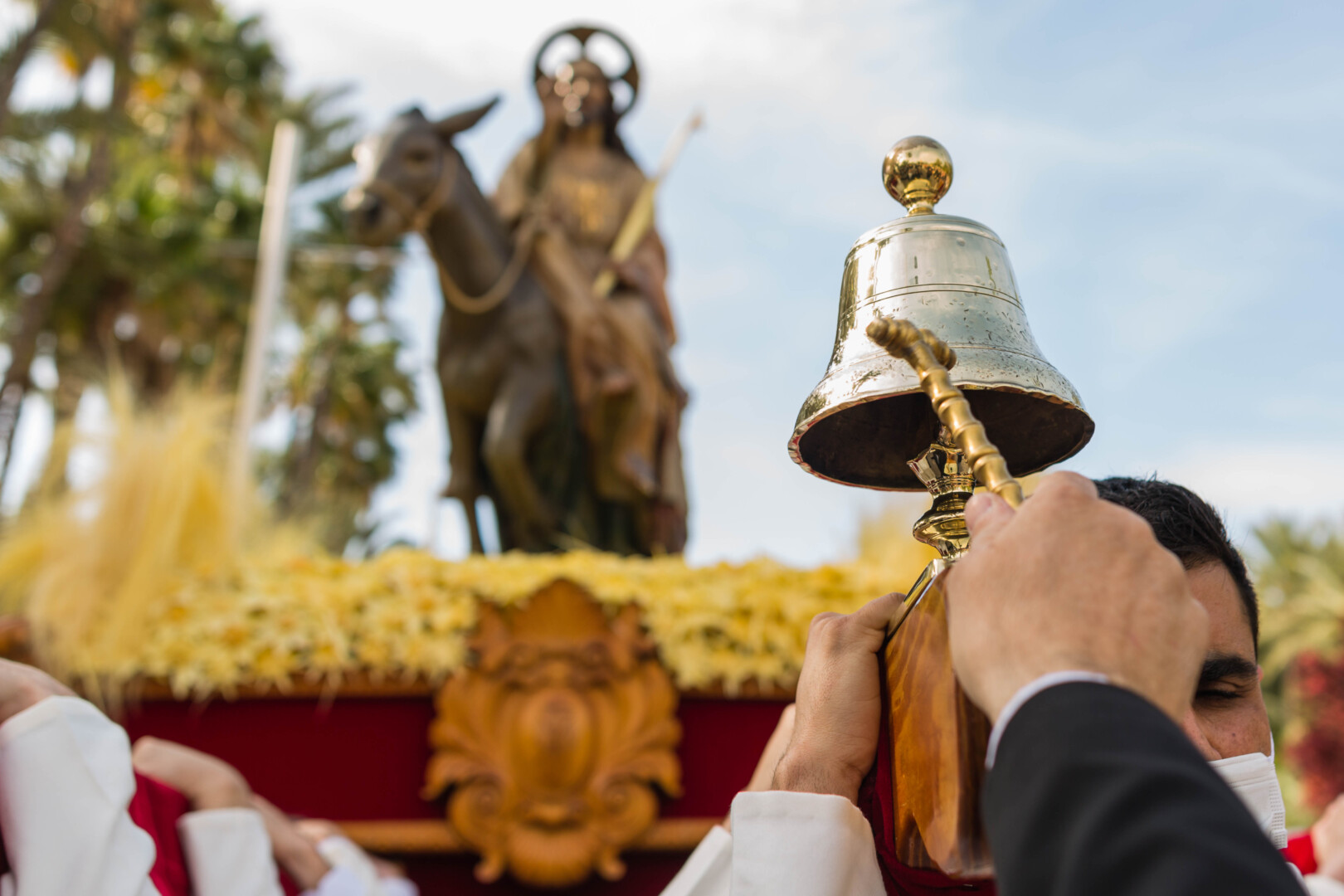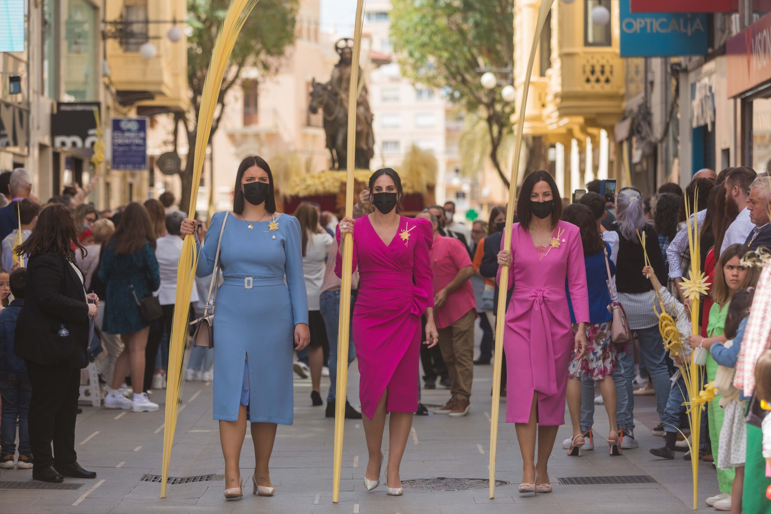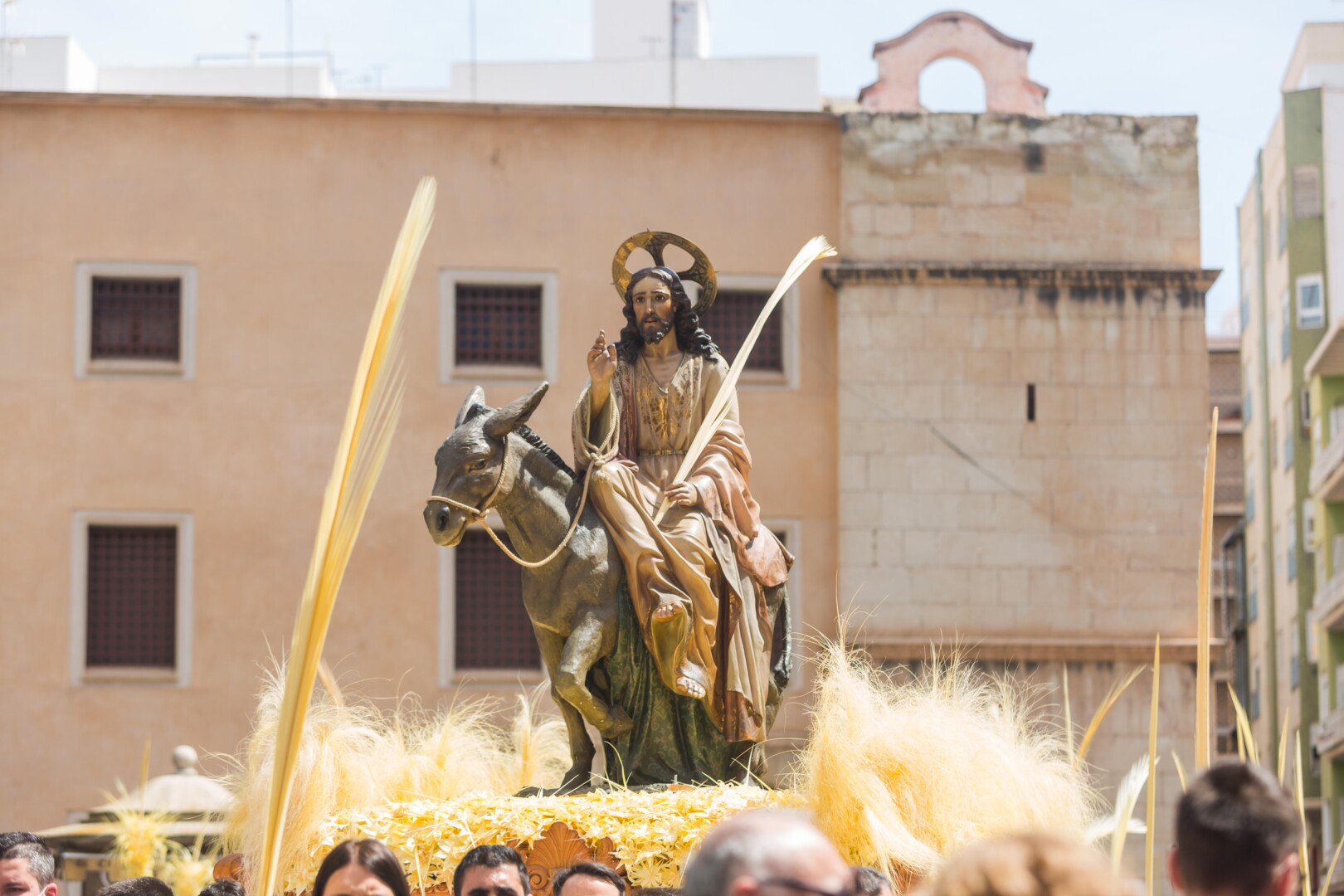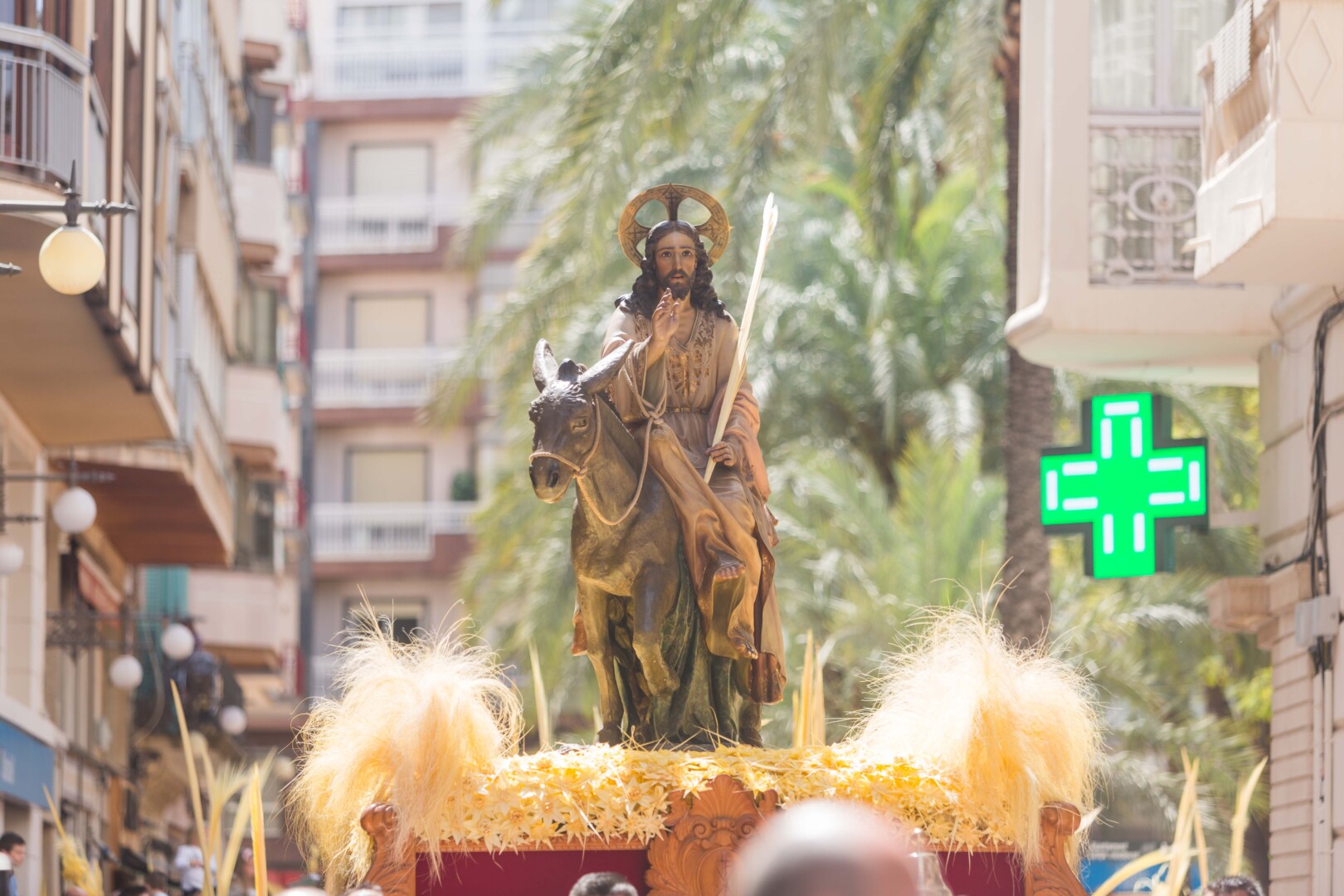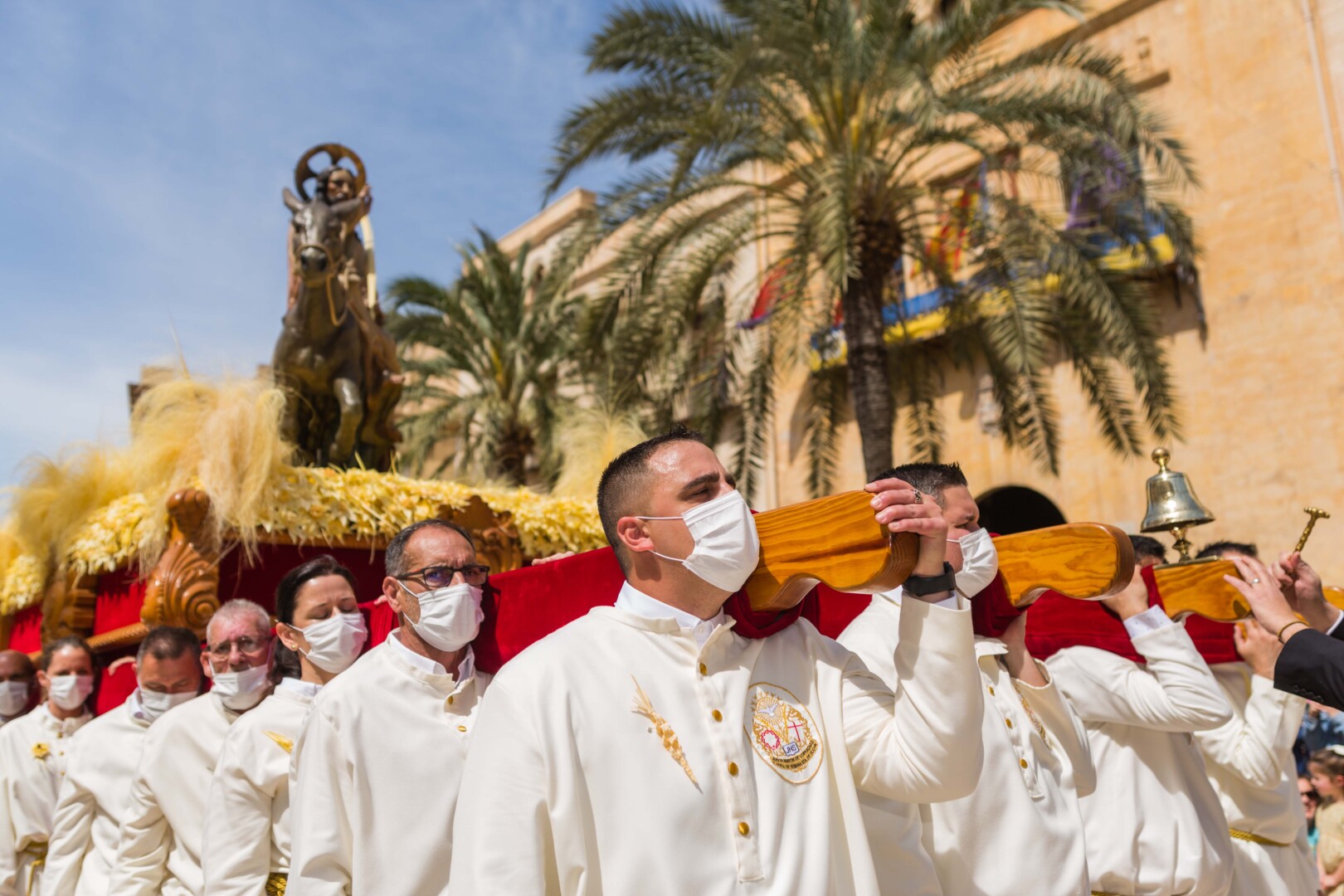 La Semana Santa ha vuelto a Elche tras dos años con un multitudinario Domingo de Ramos. La Procesión de Jesús Triunfante, Fiesta de Interés Turístico Internacional desde el 22 de julio de 1997, ha arrancado a las 11:00 horas en el Paseo de la Estación, congregando a unas 60.000 personas y pasando por algunos de los lugares más icónicos del centro de la ciudad en su recorrido hasta la basílica de Santa María. El alcalde, Carlos González, la edil de Fiestas, Mariola Galiana, el presidente de la Junta Mayor de Cofradías y Hermandades, Joaquín Martínez, miembros del Equipo de Gobierno y de la Corporación Municipal, así como otras autoridades, han acompañado al llamado “Pas de la Burreta” junto a miles de ilicitanos y visitantes.