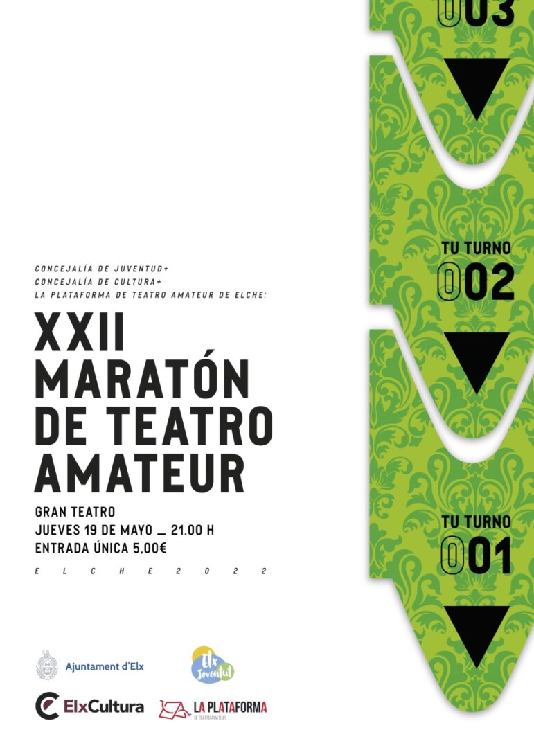 La XXII Maratón de Teatro Amateur, impulsada por la Concejalía de Juventud con la colaboración de La Plataforma de Teatro Amateur de Elche, tendrá lugar en el Gran Teatro el 19 de mayo a las 21:00 horas, tal y como ha informado la concejala de Juventud, Marga Antón, junto a la presidenta de la Asociación de Esclerosis Múltiple de Elche y Crevillente (AEMEC), María José Marroquí, y la vicepresidenta de la Plataforma de Teatro Amateur de Elche, Consuelo Pérez.