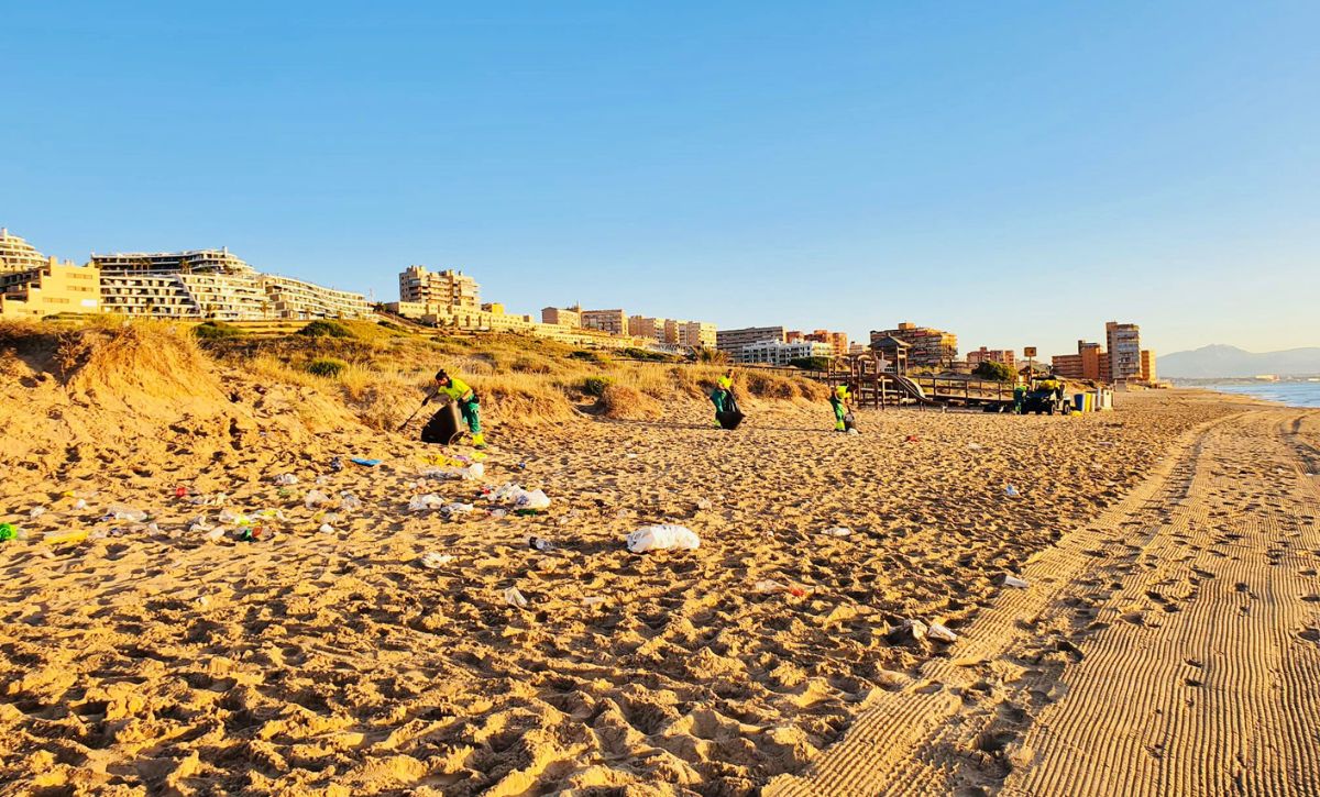 “El importante dispositivo establecido por el servicio de Limpieza ha funcionado correctamente y la veintena de vehículos y algo más de 30 operarios que han estado trabajando han conseguido recuperar la normalidad en nuestras playas en algo más de tres horas, recogiendo alrededor de cinco toneladas de residuos”, ha destacado Díez, quien ha añadido que “hay que destacar que ha habido una buena colaboración ciudadana haciendo uso de las papeleras a pie de arena, así como los nuevos contenedores ubicados en la misma playa y que han permitido ganar tiempo en la limpieza para tener el litoral ilicitano en perfectas condiciones desde primera hora”.