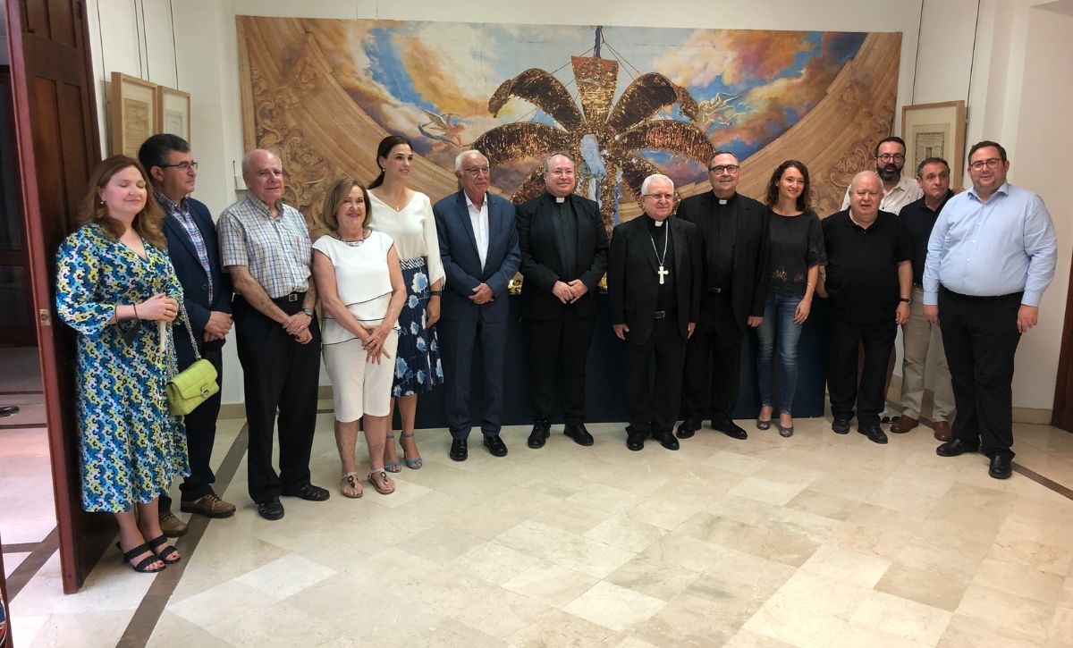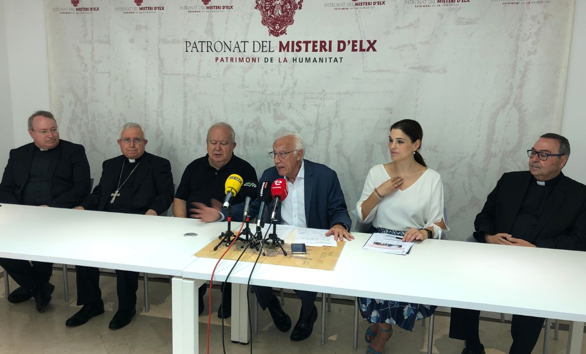 La Casa de la Festa ha albergado a mediodía la presentación de las personalidades electas y del portaestandarte de las representaciones del Misteri d’Elx para el próximo mes de agosto. En el acto, presidido por la concejala de Cultura, Marga Antón, el presidente ejecutivo del Patronato del Misteri, Francisco Borja, y del rector de la basílica de Santa María, Ángel Bonavía, se ha dado a conocer, junto a los seleccionados, que el obispo emérito de Orihuela-Alicante, Jesús Murgui, será el portaestandarte, mientras que el canónigo de la Catedral de Orihuela, Ramón Cano, y el canónigo doctoral y secretario del Cabildo de la Catedral de Orihuela, José Luis Úbeda, han sido escogidos como personalidades electas.