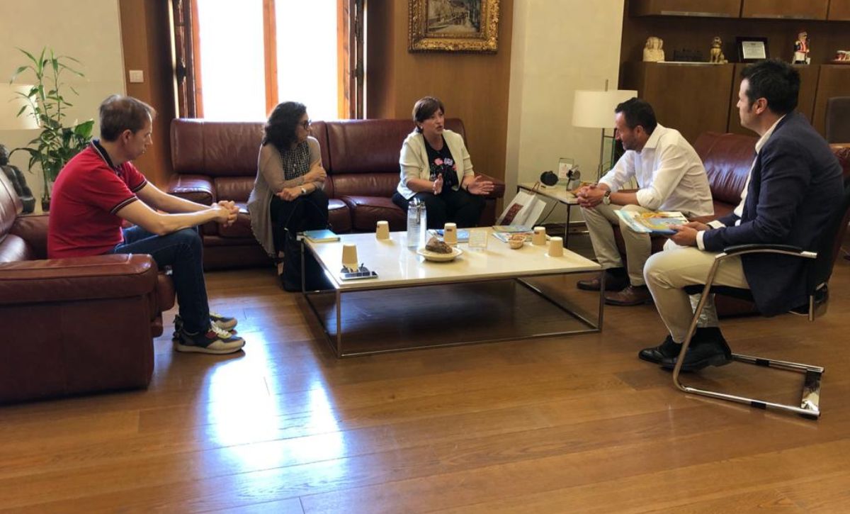 L’alcalde, Carlos González, i l’edil de Promoció Lingüística, Carles Molina, han rebut al migdia a l’Ajuntament d’Elx la presidenta de Acadèmia Valenciana de la Llengua (AVL), Verònica Cantó, l’acadèmica i filòloga il·licitana Tudi Torró –guardonada amb el Ram d’Or en 2020–, i el president de l’associació El Tempir, Josep Enric Escribano.