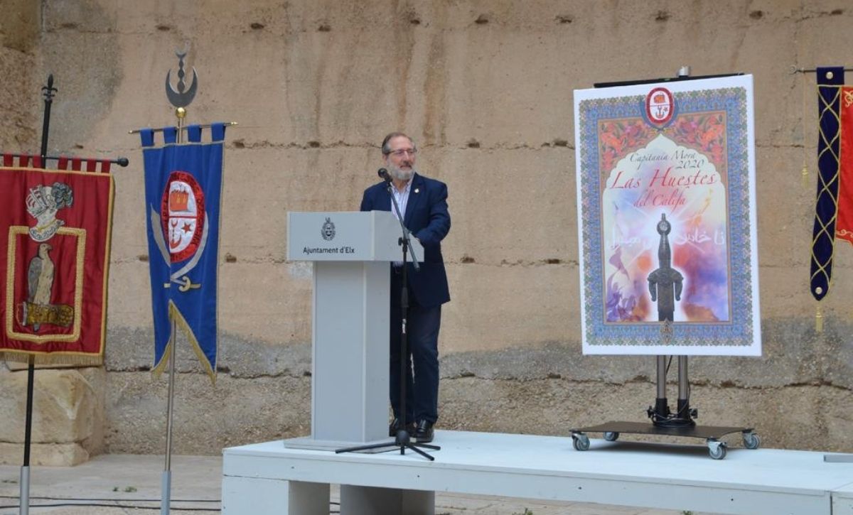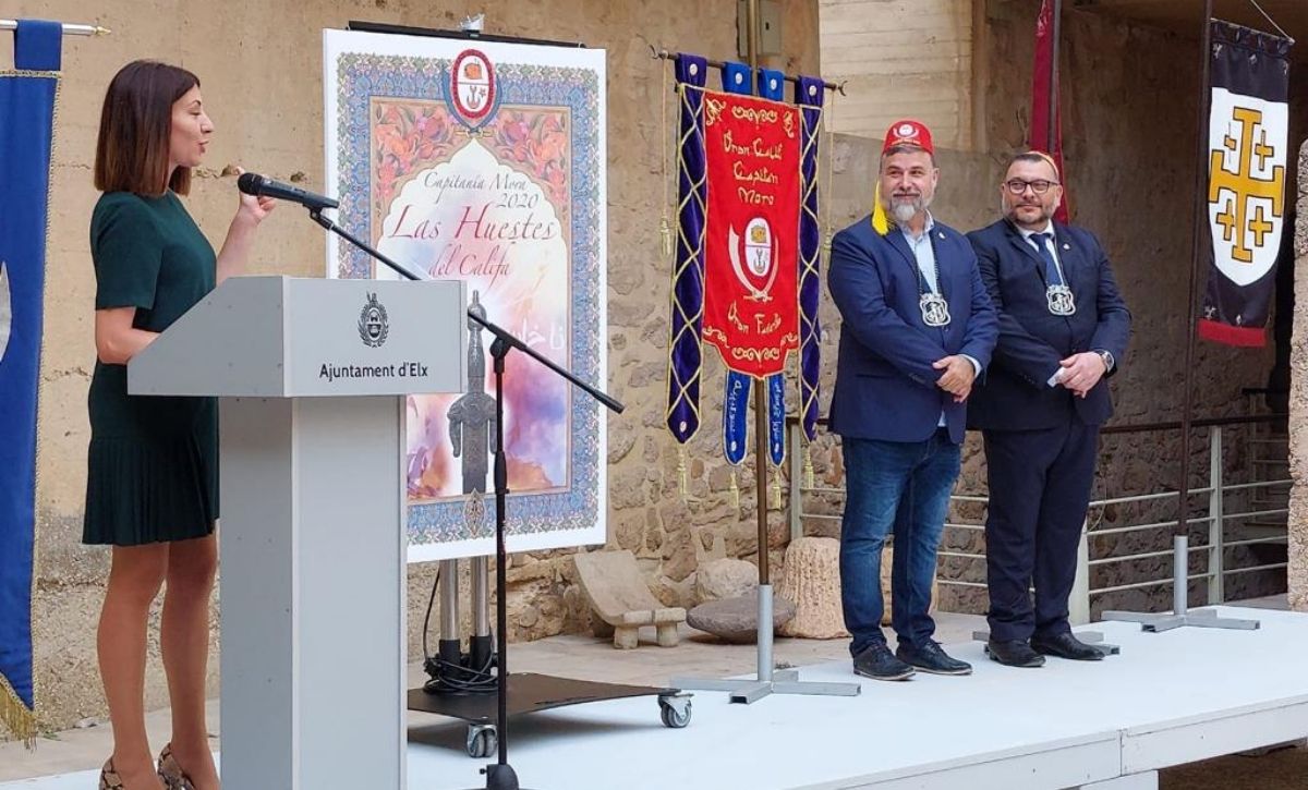 El Patio de Armas acogió anoche la presentación de las banderas de las capitanías heráldicas que liderarán la semana de fiestas patronales 2022, que este año vuelven tras dos años de parón por la pandemia. La Comparsa “Las huestes del Califa” asumirá la capitanía mora con José Eugenio Najas al frente, mientras que la comparsa “Caballeros Alcones” ostentará la capitanía cristiana con Justo Alacid como capitán. El acto contó con la presencia de la concejala de Fiestas, Mariola Galiana, y el presidente de la Asociación Festera de Moros y Cristianos de Elche, Julián Fernández, así como de representantes de entidades festeras.