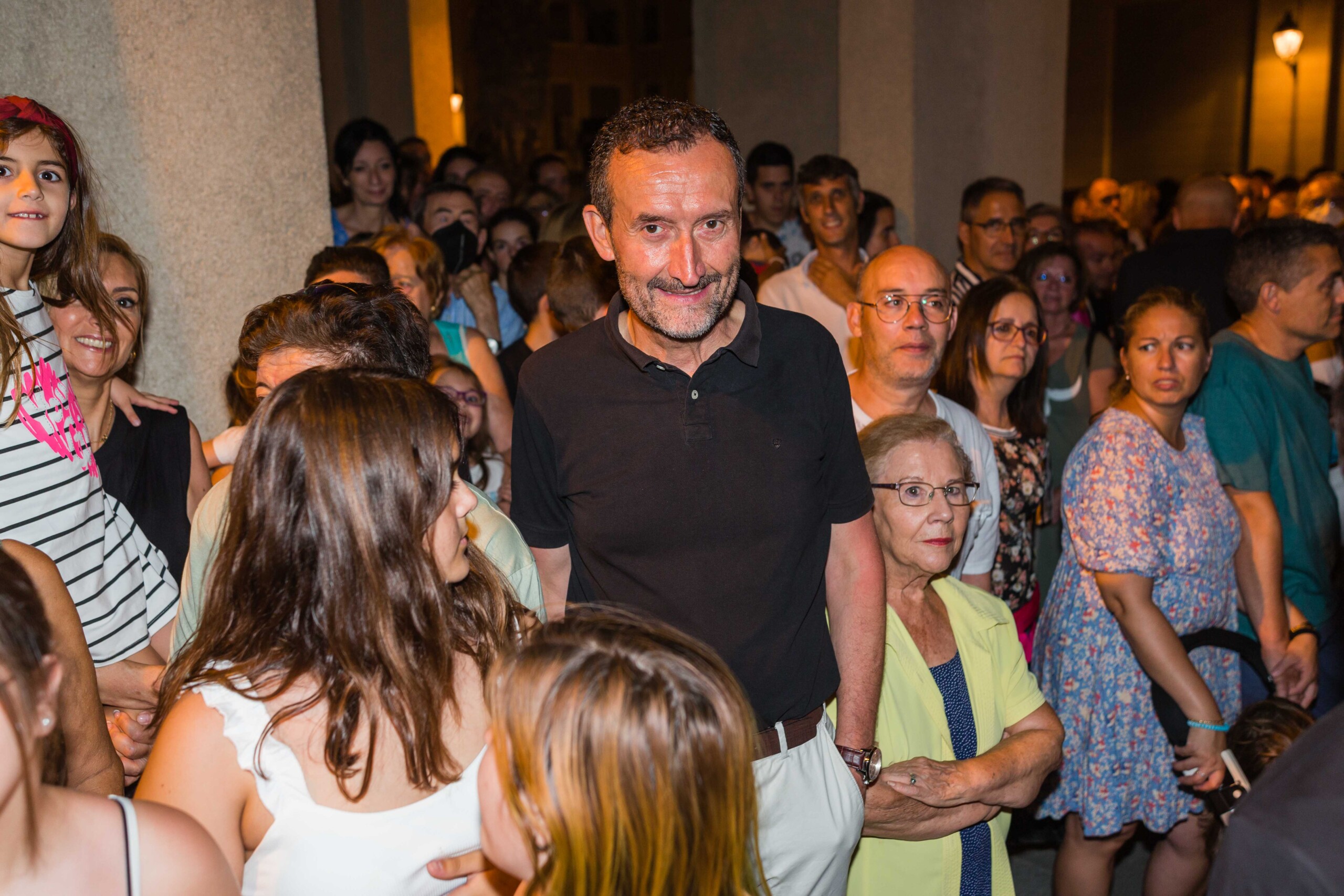 El alcalde, Carlos González, y la concejala de Fiestas, Mariola Galiana, presencian el espectáculo de fuego a ritmo de Aromas Ilicitanos con una afluencia de público que bate récord respecto a años anteriore