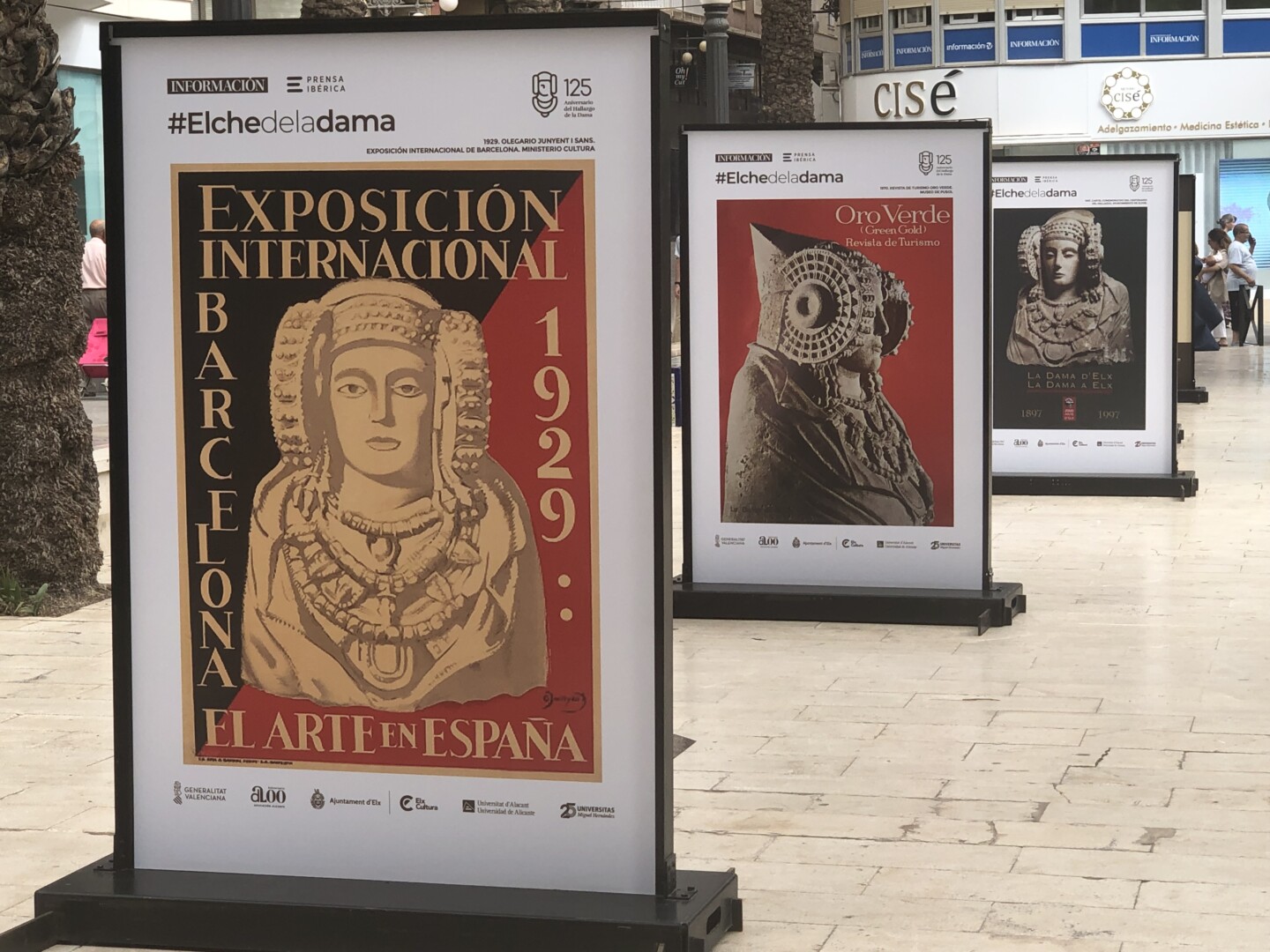 La muestra, organizada por Información, es un recorrido a través de 24 paneles que repasa alguno los escenarios, hitos e iconografía en torno al busto íbero, y que puede visitarse en la céntrica plaza ilicitana hasta el 11 de agosto