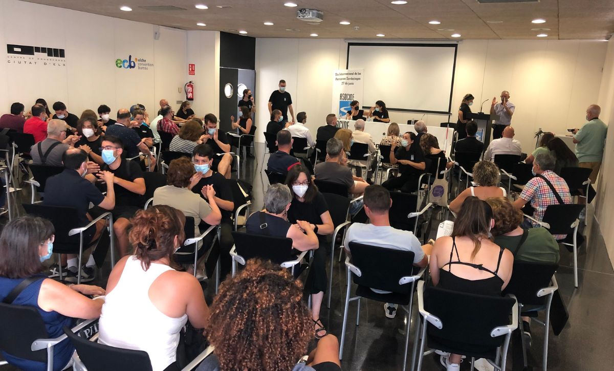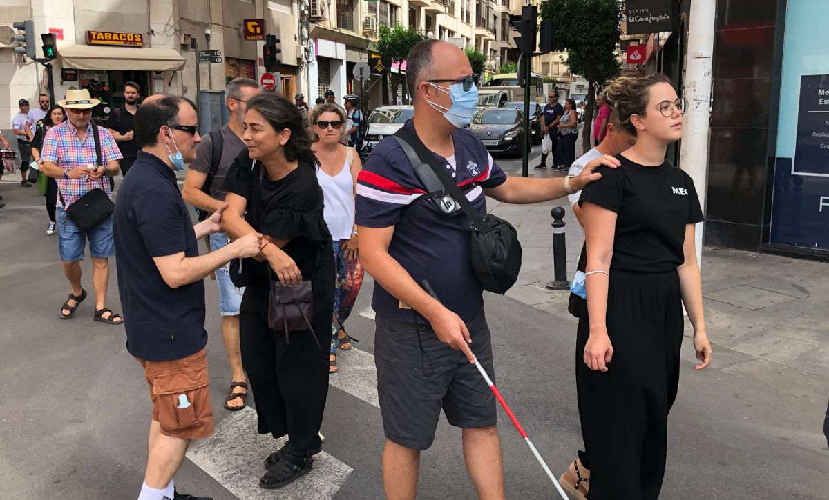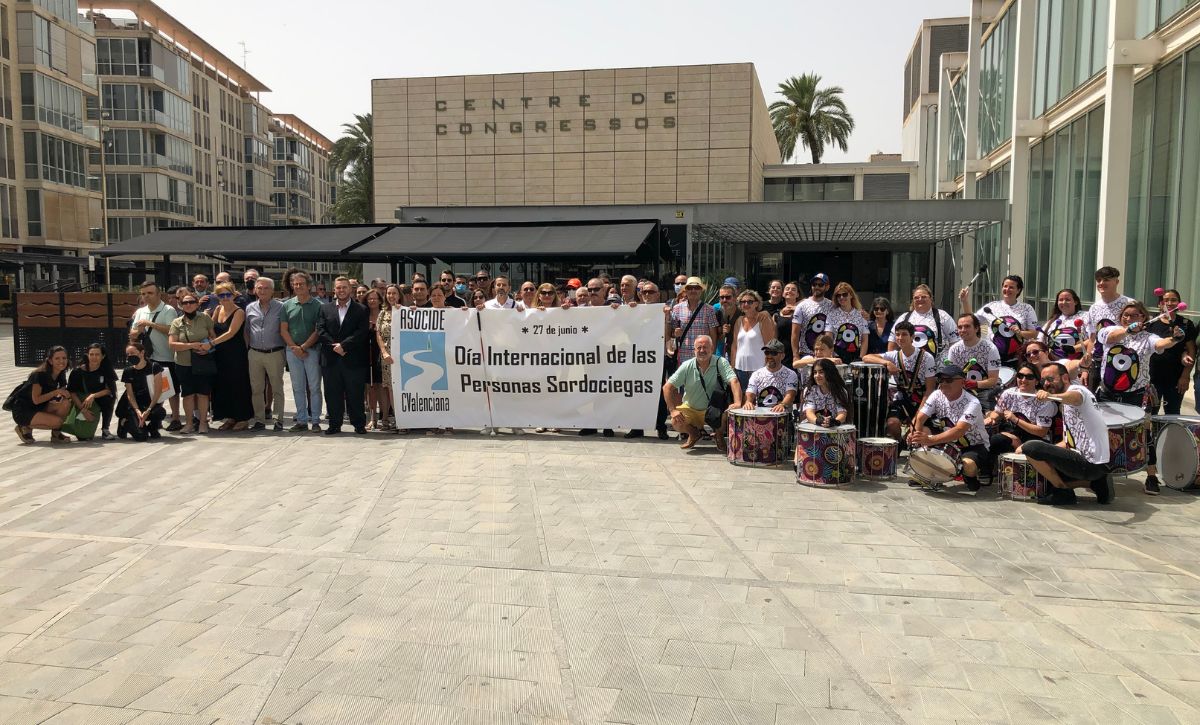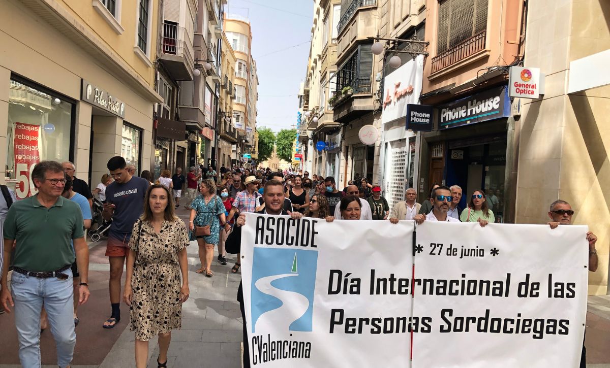 Las personas sordociegas de la Comunidad Valenciana han reivindicado sus derechos este sábado con una manifestación a ritmo de batucada por el centro de Elche. La capital de Baix Vinalopó ha sido la localidad escogida por la Asociación de Personas Sordociegas de la Comunidad Valenciana (ASOCIDE CV) este año para conmemorar el Día Internacional de las Personas Sordociegas a nivel autonómico, cuya efeméride fue el pasado miércoles 27 de junio. El colectivo ha llamado, a través de un manifiesto de 12 puntos leído a mediodía en el Centro de Congresos de forma oral y signada, a que la sociedad tome conciencia de la complejidad de sus necesidades y a favorecer la inclusión social.