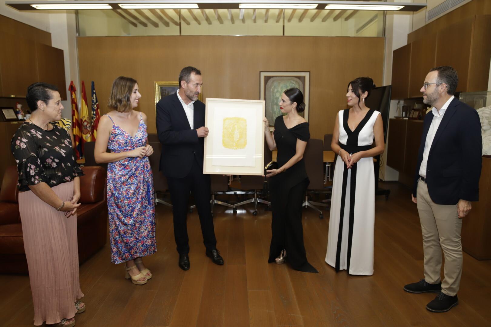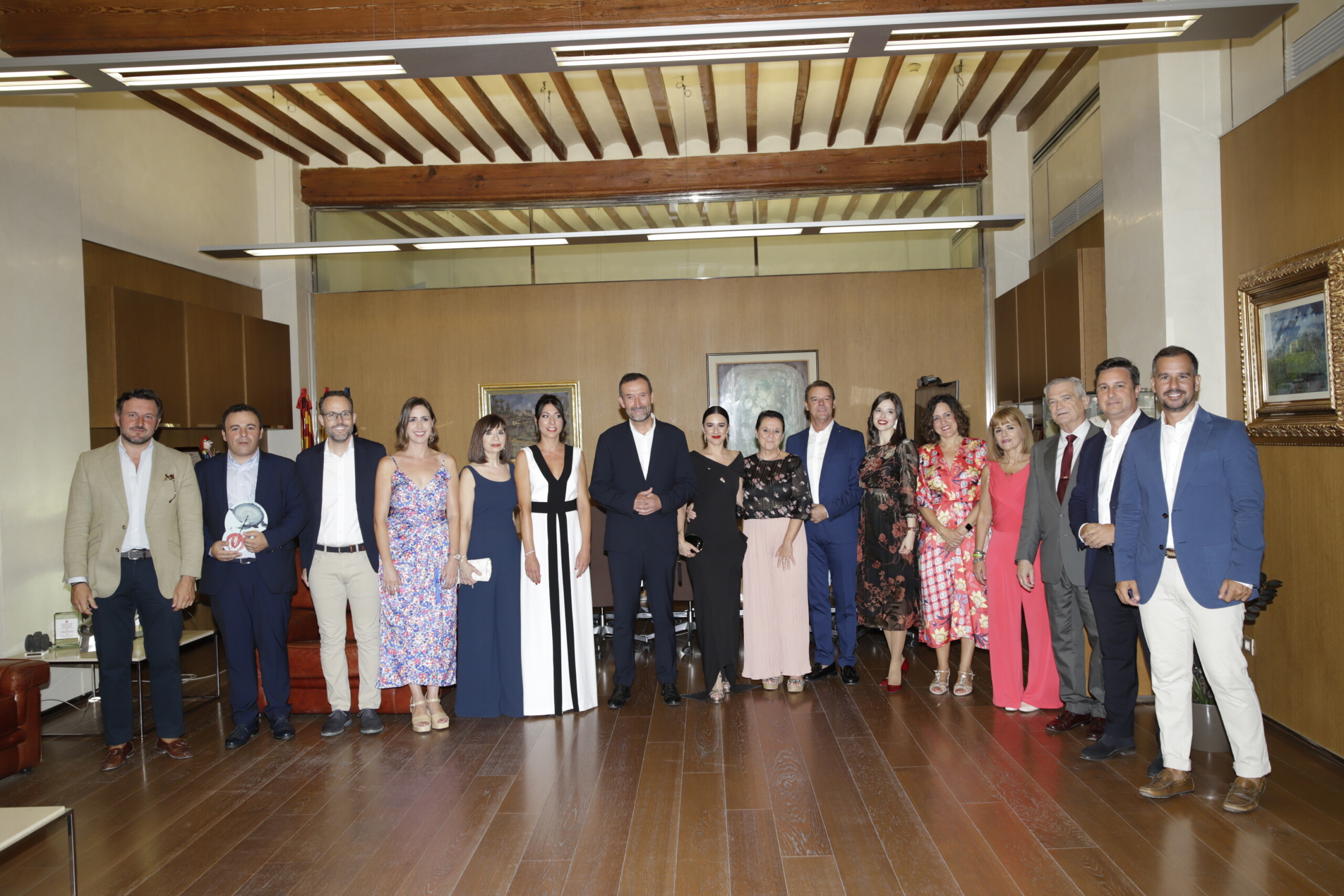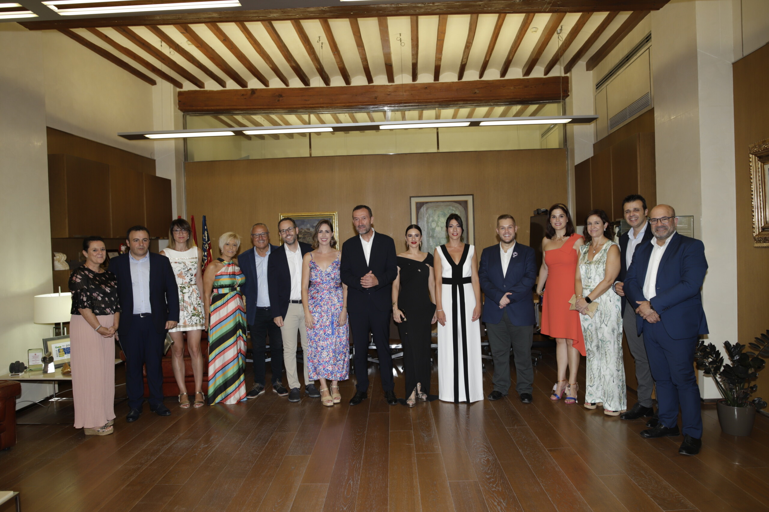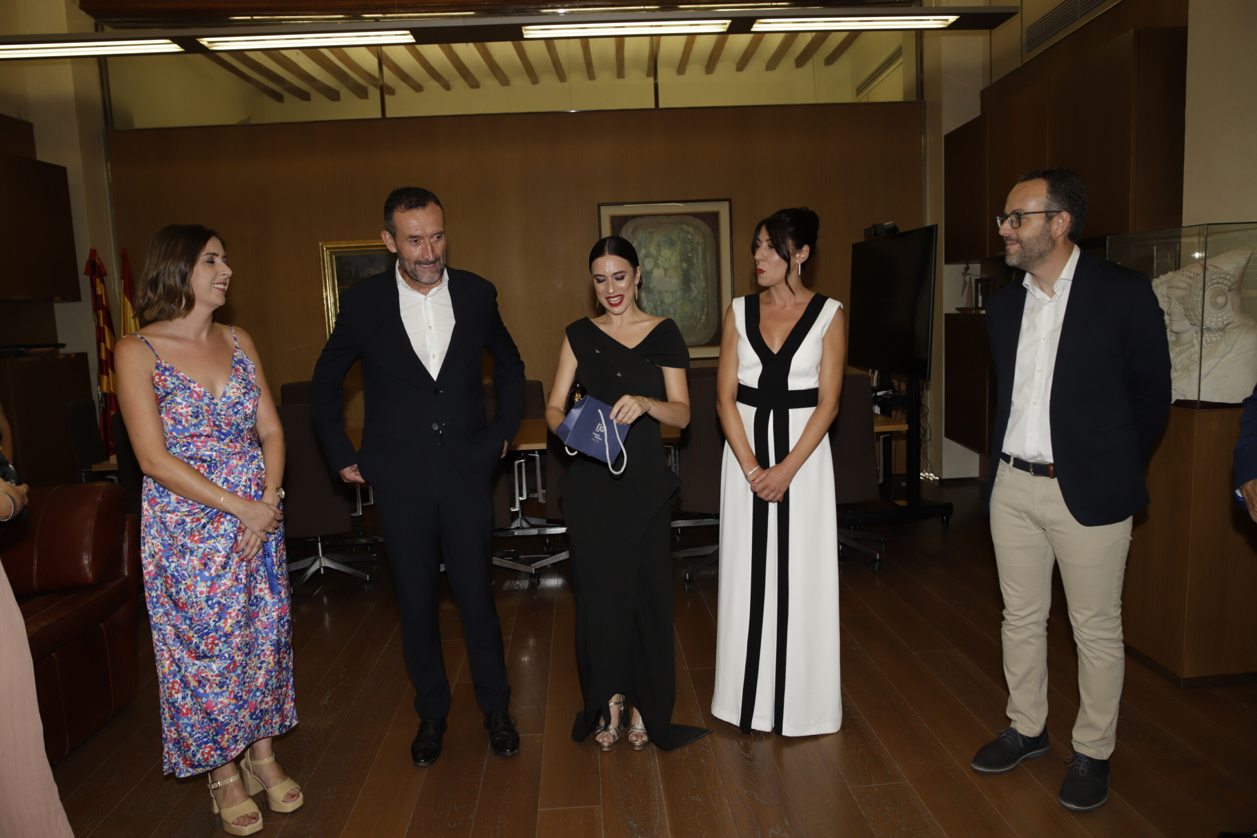 El alcalde, Carlos González, acompañado por la edil del área, Mariola Galiana, las reinas y damas de las fiestas, representantes de los entes festeros y los portavoces municipales, califica de excepcional la labor de la cantante como pregonera de 2022