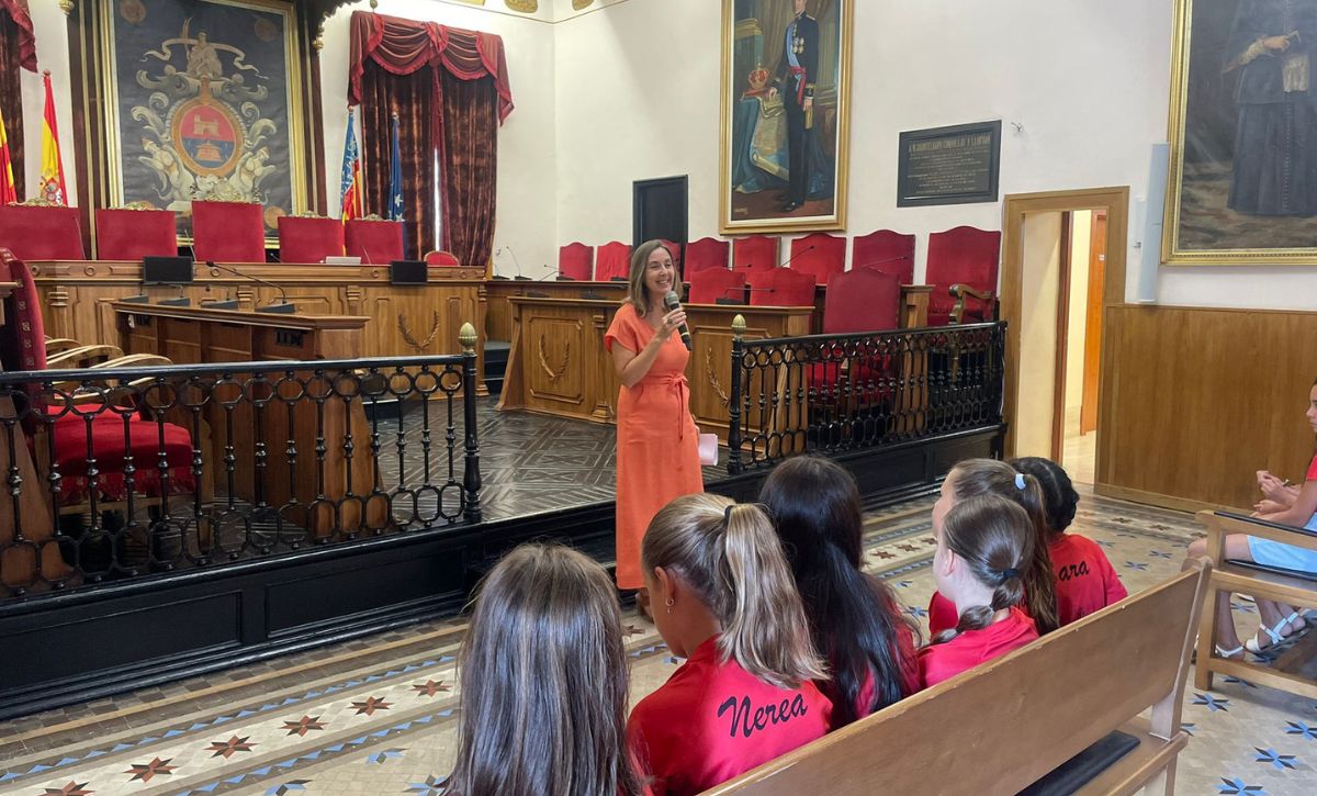 Martínez ha recibido en el Salón de Plenos a las componentes del grupo «The Queen of Moles», todas ella con edades comprendidas de entre seis y once años, y a su profesora, Ana Belén Guzmán.