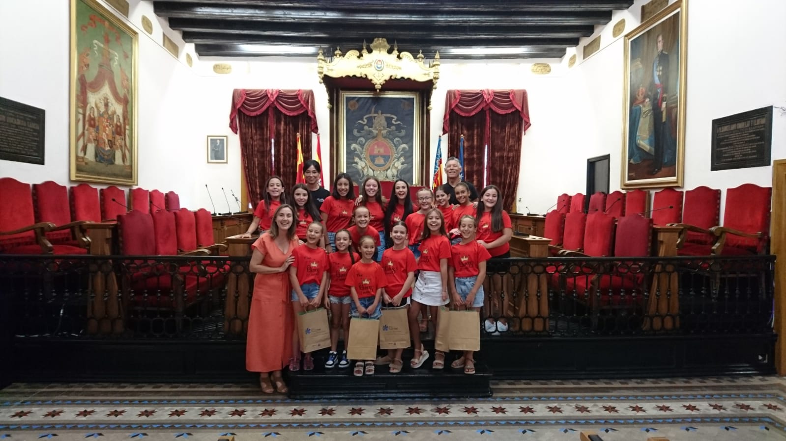 María José Martínez recibe en el Salón de Plenos a las componentes del grupo «The Queens of Moles» y a su profesora, Ana Belén Guzmán, quienes han sido campeonas de España en la competición «Vive tu sueño» impulsada por la prestigiosa compañía Dancing Star