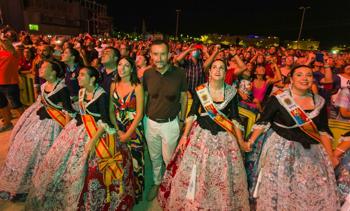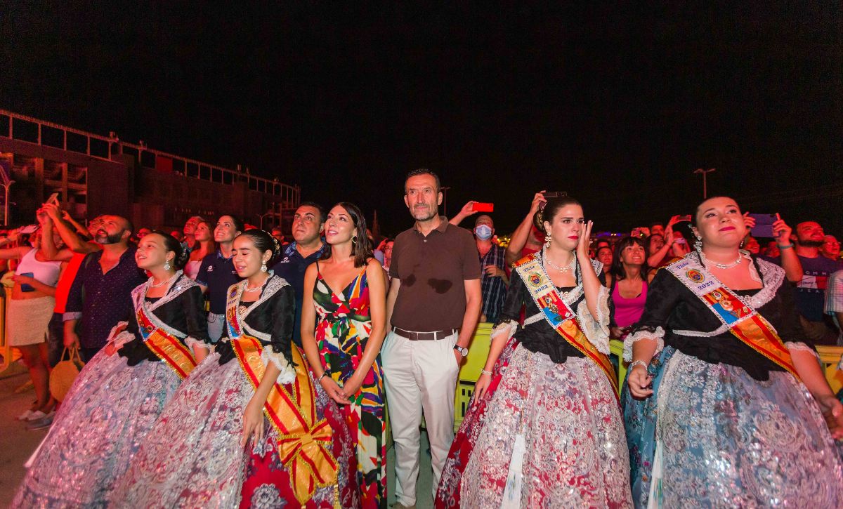 El alcalde, Carlos González, la concejala del área, Mariola Galiana, y miembros del Equipo de Gobierno acuden a ver el espectáculo nocturno de color, sonido y pólvora organizado por el Ayuntamiento y la Federación Gestora de Festejos Populares