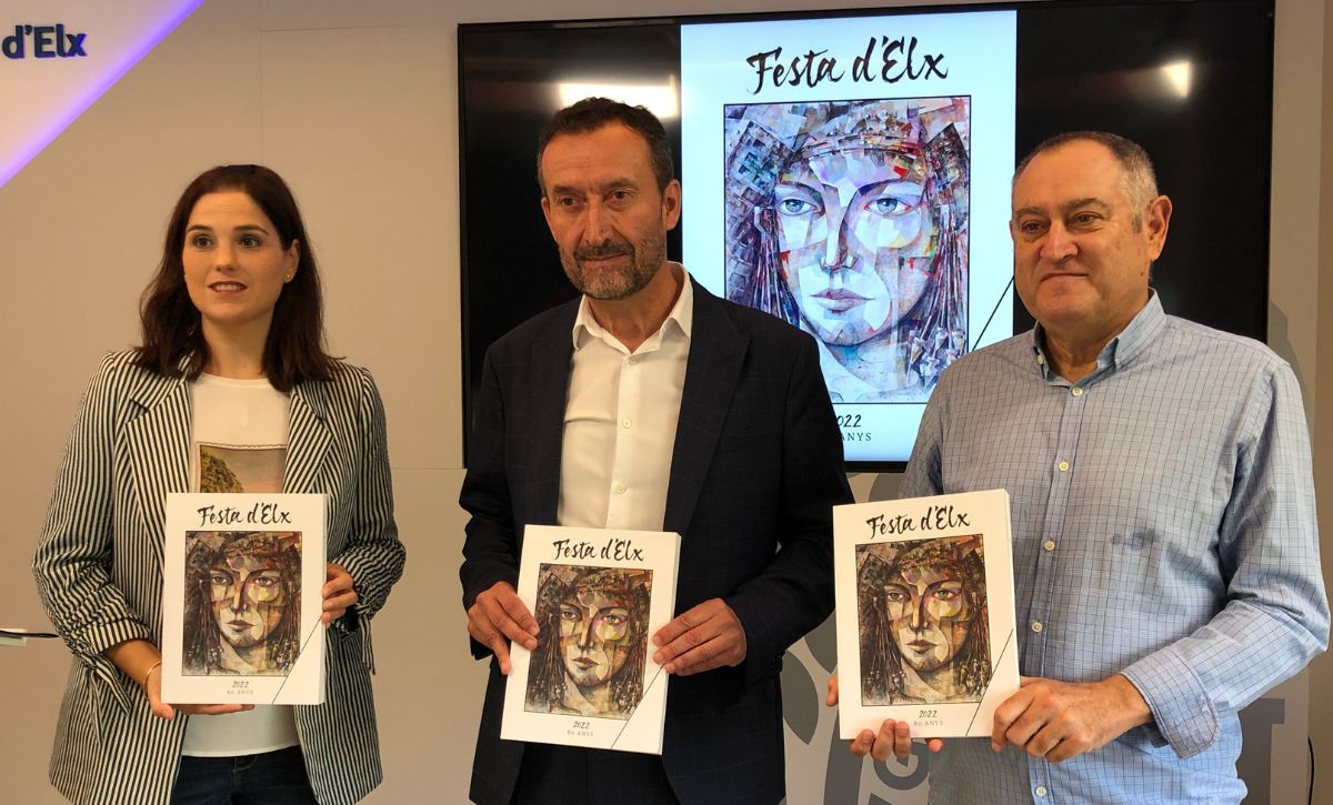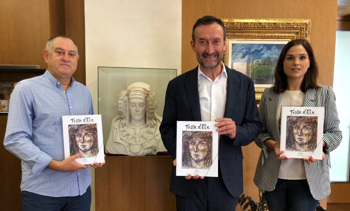 La revista Festa d’Elx cumple ocho décadas de historia con la Dama como protagonista en el año del 125 aniversario de su hallazgo. El alcalde, Carlos González; la concejala de Cultura, Marga Antón; y el director de la publicación, Gaspar Macià, han presentado en el Ayuntamiento un número 63 del cual se imprimirán 350 ejemplares y que consta de 12 artículos en 236 páginas. Fernando Sánchez y Juan firma la portada, una representación pictórica del busto ibero fruto “de la genialidad del artista y galerista ilicitano, que le ha llevado a reinterpretarlo y a embellecerlo”, ha elogiado González.