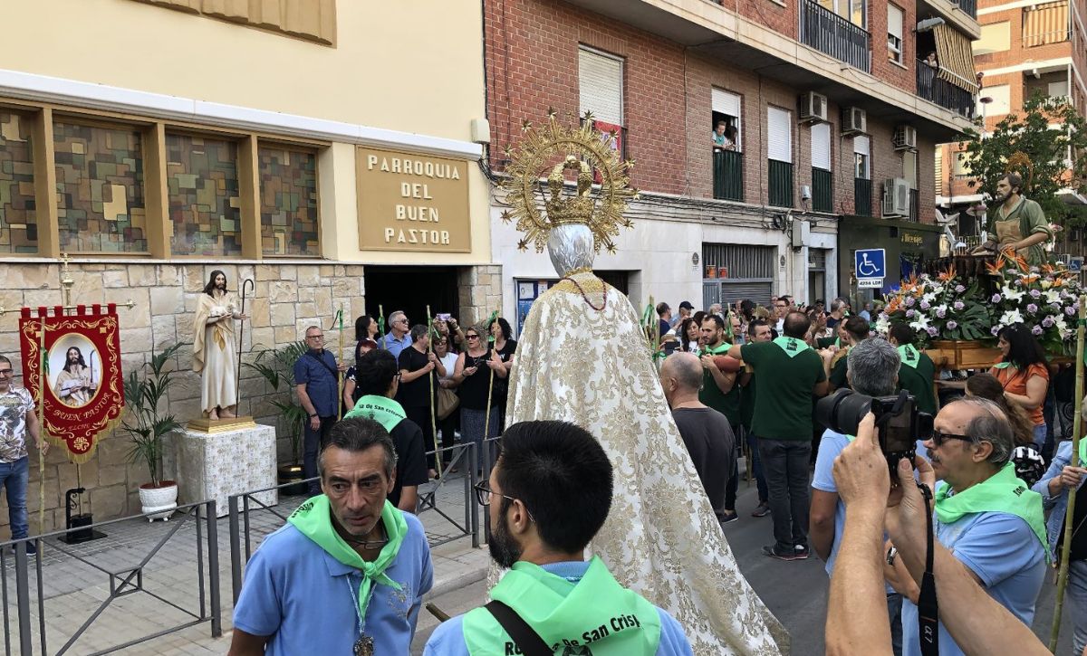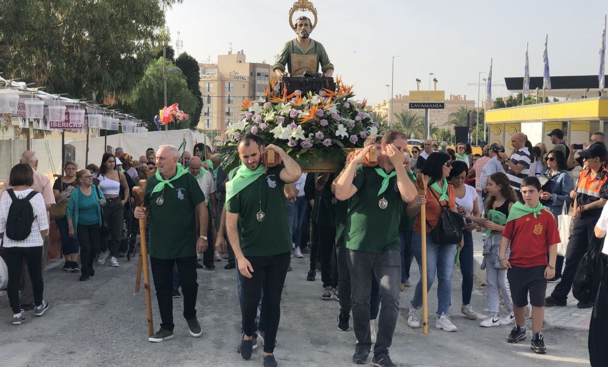 Las tracas y los vítores han acompañado a la talla en su recorrido desde la parroquia Madre de Dios hasta su ermita, con una parada en la iglesia del Buen Pastor y precedida en todo momento por la Virgen de la Asunción, con motivo del 650 aniversario de su hallazgo en la playa del Tamarit. El alcalde, Carlos González; la edil de Fiestas, Mariola Galiana; el presidente de la Asociación de Amigos de San Crispín, Juan Manzano; el obispo de la Diócesis Orihuela-Alicante, José Ignacio Munilla; miembros del Equipo de Gobierno y de la Corporación Municipal, amén de otros representantes eclesiásticos y de entidades festeras, han participado en el evento.