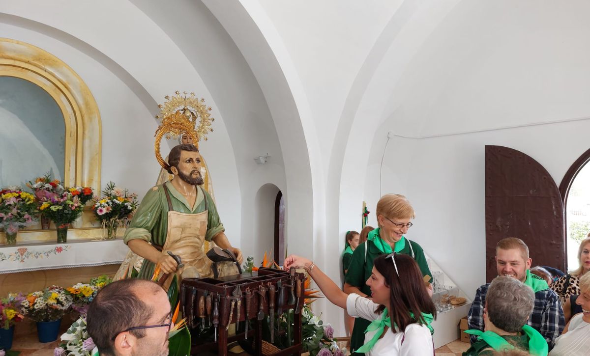 González, Galiana y los concejales María José Martínez, Patricia Macià, Mariano Valera, Vicente Alberola, Héctor Díez, Carles Molina y Puri Vives se han acercado a los puestos de alimentación y otros artículos situados frente a la ermita y a la carpa instalada por la Asociación de Aparadoras para visibilizar las reivindicaciones y realidad de su oficio, en una cita en la que las chinchetas y los calendarios también han regresado con fuerza. La ciudadanía, el regidor y ediles, pero, especialmente, los operarios del calzado, han aguardado la concurrida fila ante el templo tras la misa con cantos corales oficiada por Munilla para hacerse con uno de los almanaques de bolsillo, las tachuelas de la mesa del santo y pedirle, como es tradición, buena ventura en lo laboral.