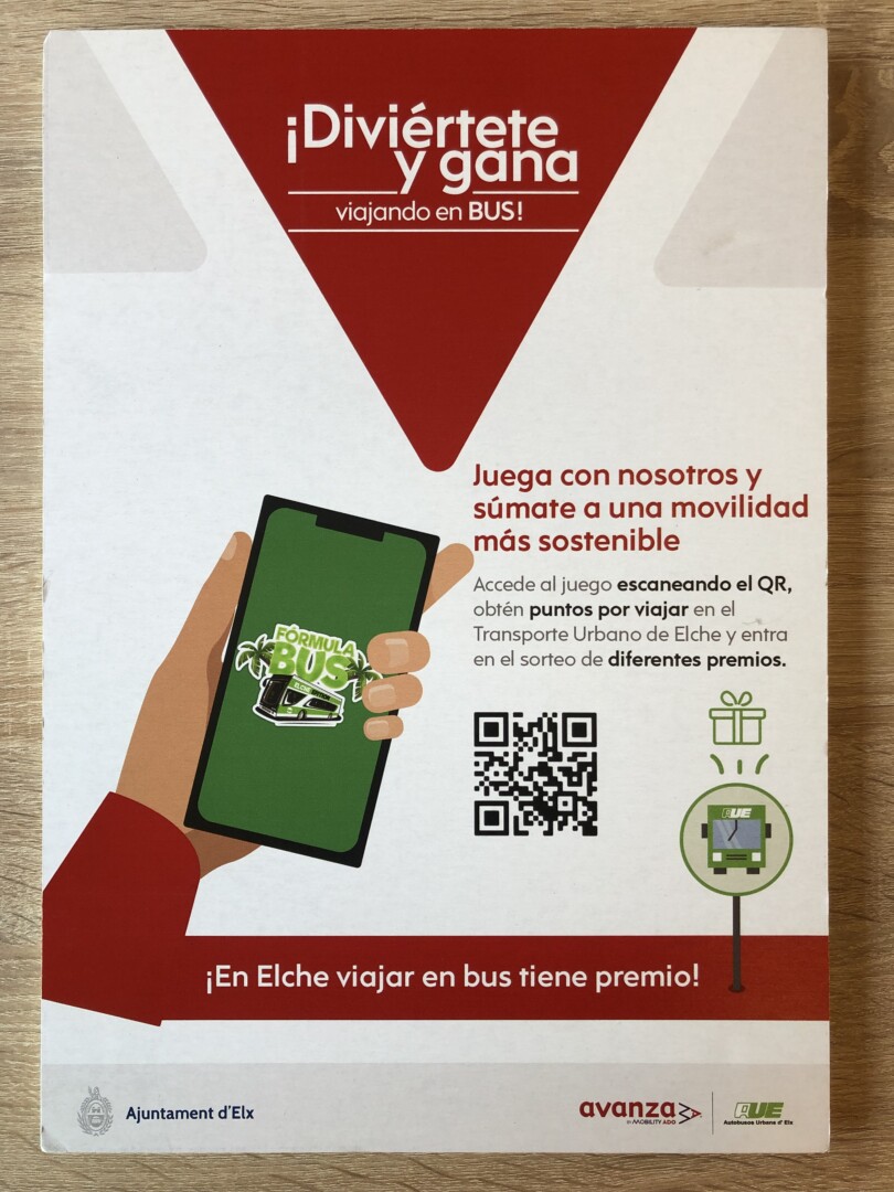La Concejalía de Movilidad presenta un proyecto de gamificación en los autobuses urbanos que pretende captar 5.000 usuarios al mes y evitar la emisión de más de 11.000 toneladas de CO₂, contribuyendo al objetivo del Plan de Movilidad Sostenible de Elche de reducir las emisiones contaminantes y el gasto energético en un 50% para 2030. La edil del área, Esther Díez, y el gerente de Autobuses Urbanos de Elche (AUESA), Ángel Luis Andreu, han presentado la iniciativa Fórmula Bus, por la cual los usuarios y usuarias podrán optar a sorteos y ganar premios sumando puntos al viajar en los buses, completar etapas y retos, al tiempo que, desde el Ayuntamiento, se fomenta la utilización del transporte colectivo en la ciudad.
