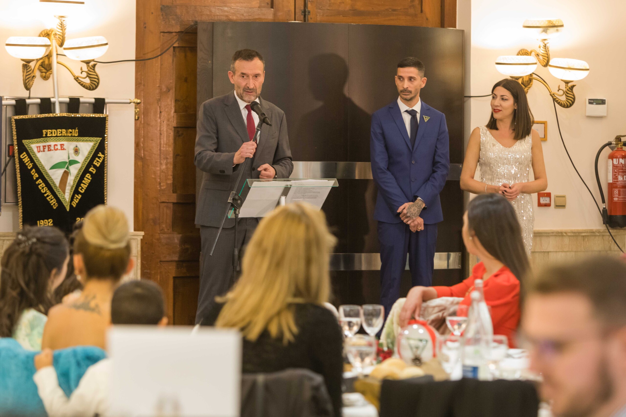 Carlos González y la concejala de Fiestas, Mariola Galiana, asisten ‘Sopar fester’ en el que las trece comisiones que forman parte de la Unió de Festers del Camp d’Elx rinden homenaje a sus reinas y damas