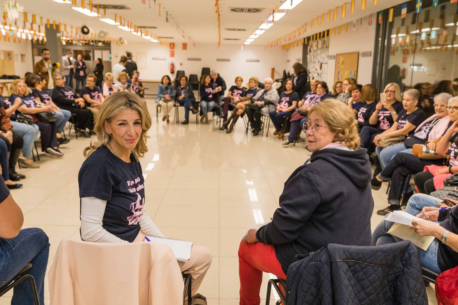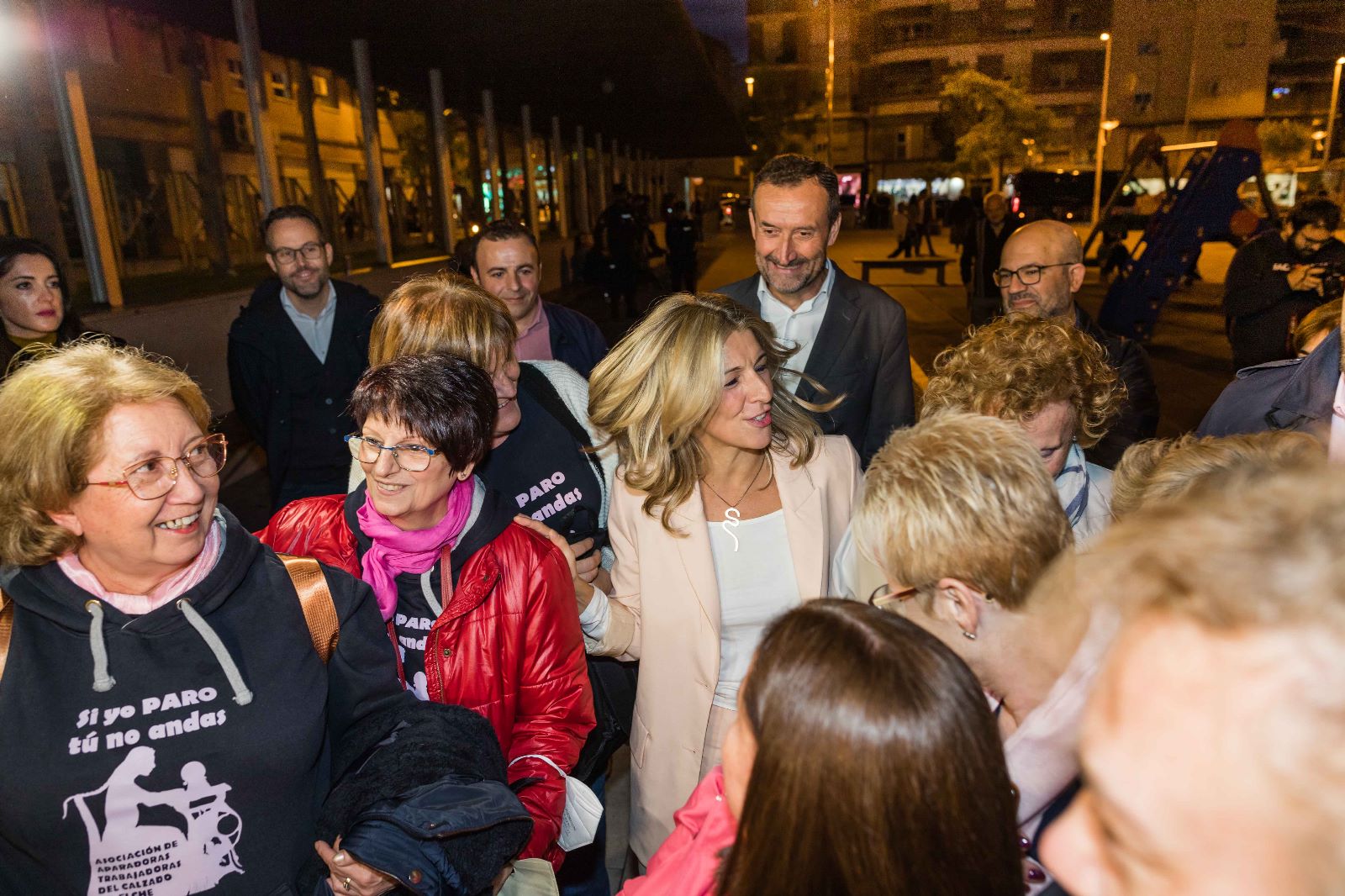 La vicepresidenta segunda del Gobierno y ministra de Trabajo y Economía Social, Yolanda Díaz, ha visitado Elche el viernes 18 de noviembre por la tarde a fin de mantener una reunión con aparadoras, que ha tenido lugar en el Centro Cívico Francesc Cantó de Carrús.