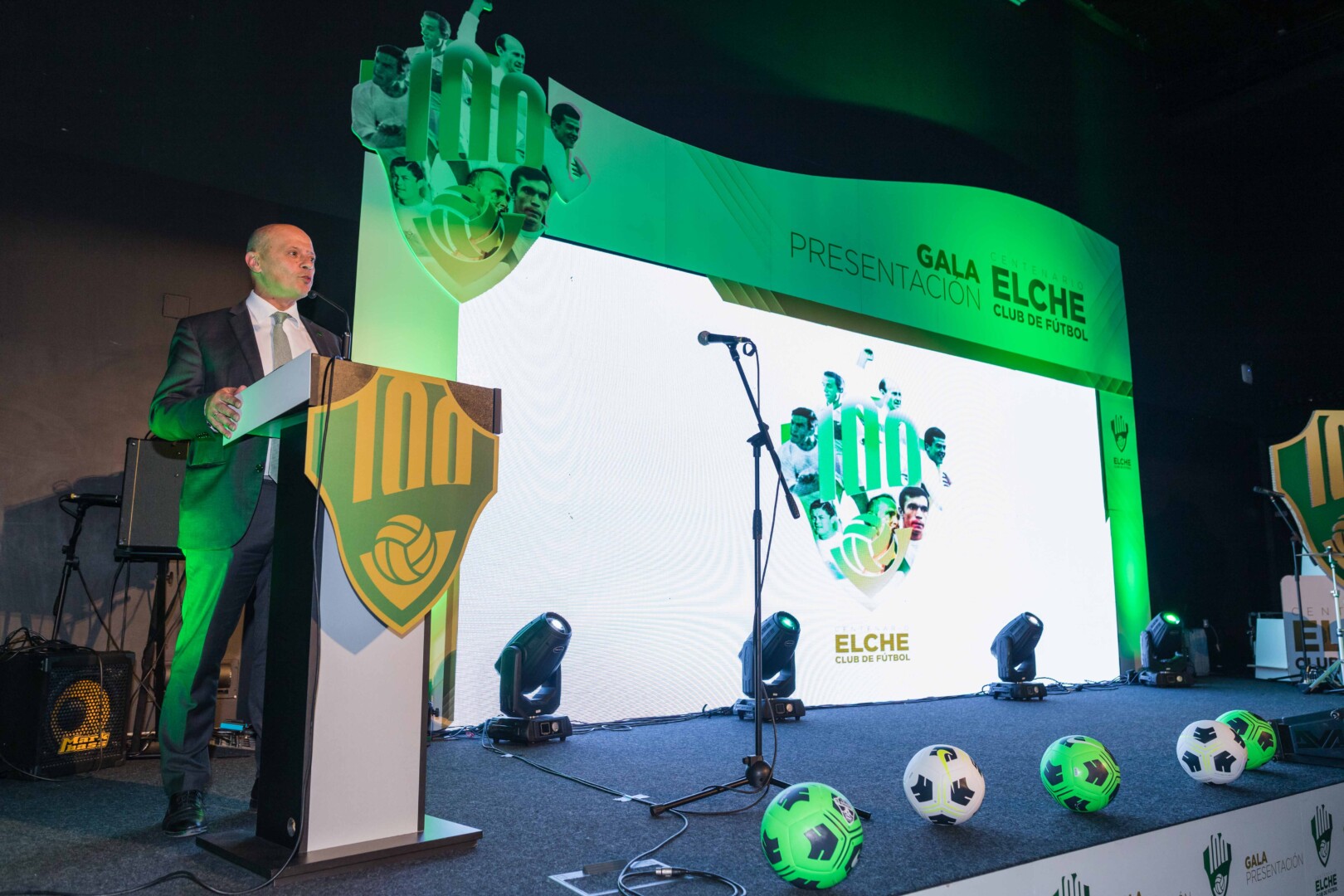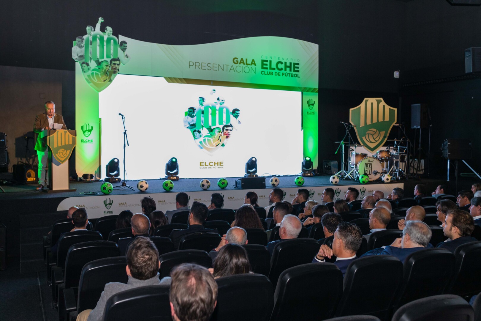 El edil de Deportes del Ayuntamiento de Elche, Vicente Alberola, y miembros del Equipo de Gobierno y de la Corporación, asistieron, en el Centro de Congresos Ciutat d’Elx, a la Gala del Centenario del Elche CF en la que el club presentó algunos de los actos organizados con motivo de esta efeméride. Un evento en el que estuvieron presentes los capitanes de la actual plantilla, cuerpo técnico, directiva, patrocinadores, aficionados y multitud de ex jugadores del club franjiverde, y en el que se ha hizo un recorrido por la historia de un club que celebra su centenario en la máxima categoría del fútbol nacional.