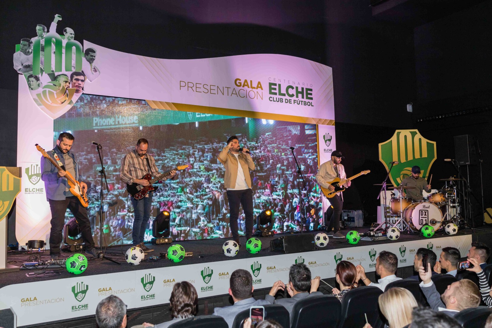 Durante el acto se llevó a cabo el reconocimiento a jugadores de otras épocas y ha habido un emotivo recuerdo para los franjiverdes ausentes con la proyección de un vídeo. Y tras las palabras del presidente del Elche CF, Joaquín Buitrago, llegó el momento más esperado de la tarde, la presentación del Himno del Centenario del Elche CF, creado por el grupo ilicitano ‘Diagnóstico Binario’.