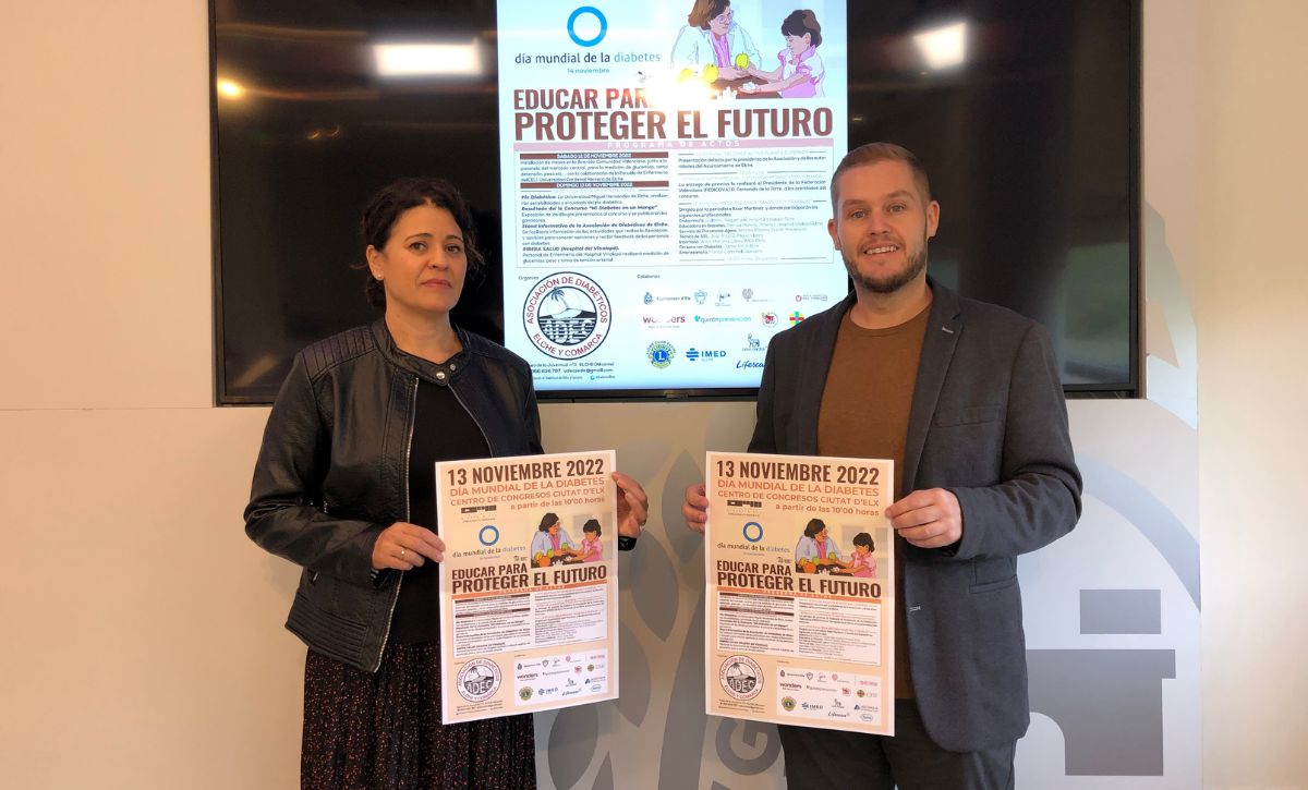 El Centro de Congresos Ciutat d’Elx acogerá el domingo 13 de noviembre de 2022 una jornada por el Día Mundial de la Diabetes que pondrá énfasis en la prevencíón. No en vano, la cita organizada por la Asociación de Diabéticos Elche y Comarca con la colaboración del Ayuntamiento de Elche y que arrancará a las 10:00 de la mañana, tiene como lema “educar para proteger el futuro”, escogido por la ONU en este 2022. El edil de Derechos Sociales y Políticas Inclusivas, Mariano Valera, y la presidenta de la Asociación de Diabéticos Elche y Comarca (ADEC), María Pizana, han presentado esta cita, que se desarrollará de 10:00 a 14:00 horas en las instalaciones de Porta de la Morera y que incluirá estands, charlas, presentaciones y una mesa sobre diabetes y trabajo a las 12:30 en la que se podrán escuchar voces autorizadas al respecto, tal como ha detallado Pizana.