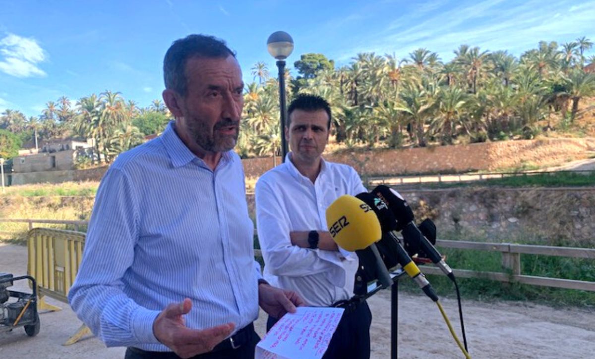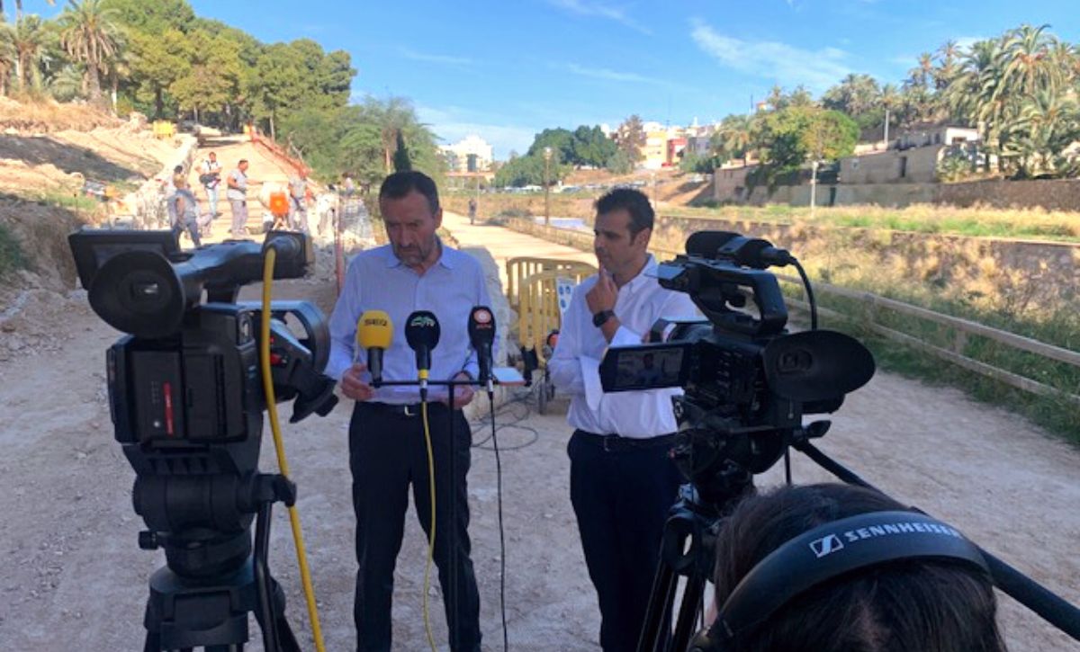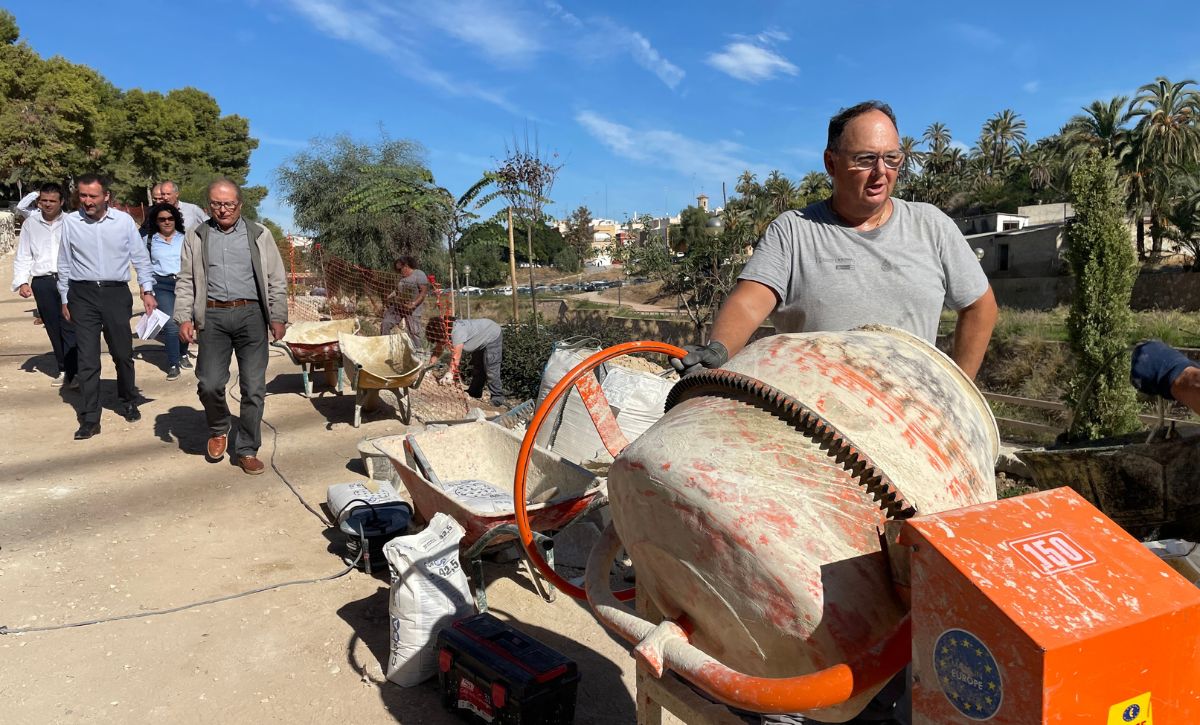 El alcalde de Elche, Carlos González y el edil de Promoción Económica, Carles Molina, han visitado esta mañana los trabajos de mejora de la ladera del Vinalopó que el taller de empleo XV está llevando a cabo en la zona cercana al Pont de la Generalitat.