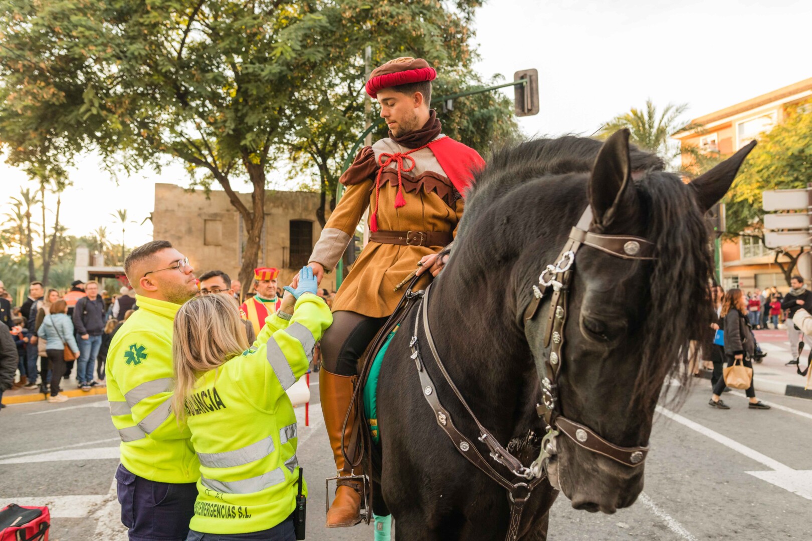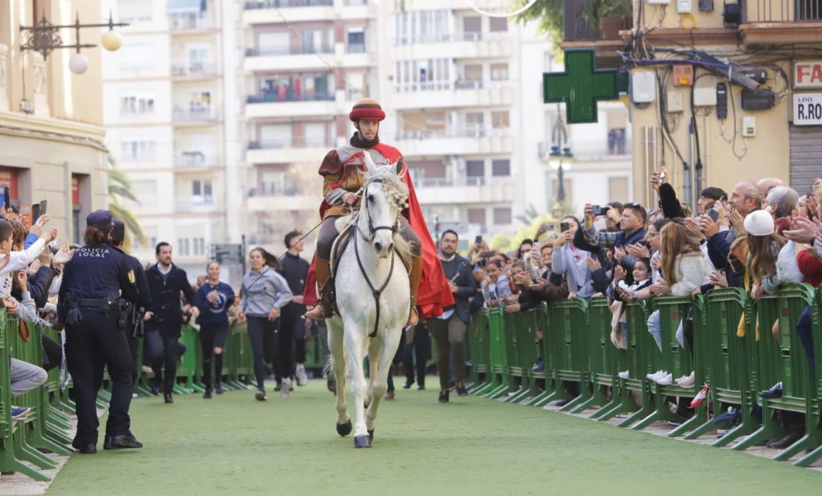“Estoy muy bien, con ganas de seguir. Ha sido todo muy rápido, el caballo se ha deslizado un poco, nos hemos levantado los dos y a seguir. El caballo me ha pisado una mano, pero ha sido tocarme el dedo y comprobar que todo estaba bien. En la carrera iba muy emocionado”, ha manifestado esta tarde Francesc Cantó, personaje representado por Iván Pomares, tras sufrir una leve caída en la calle Alfonso XII en su galopada hasta la Plaça de Baix para anunciar el hallazgo del arca con la imagen de la patrona en la playa del Tamarit. Cantó completó el recorrido desde el Hort de les Portes Encarnaes hasta la Plaça de Baix en dos minutos y 35 segundos, mientras era aclamado por miles de personas fieles a esta arraigada tradición ilicitana.