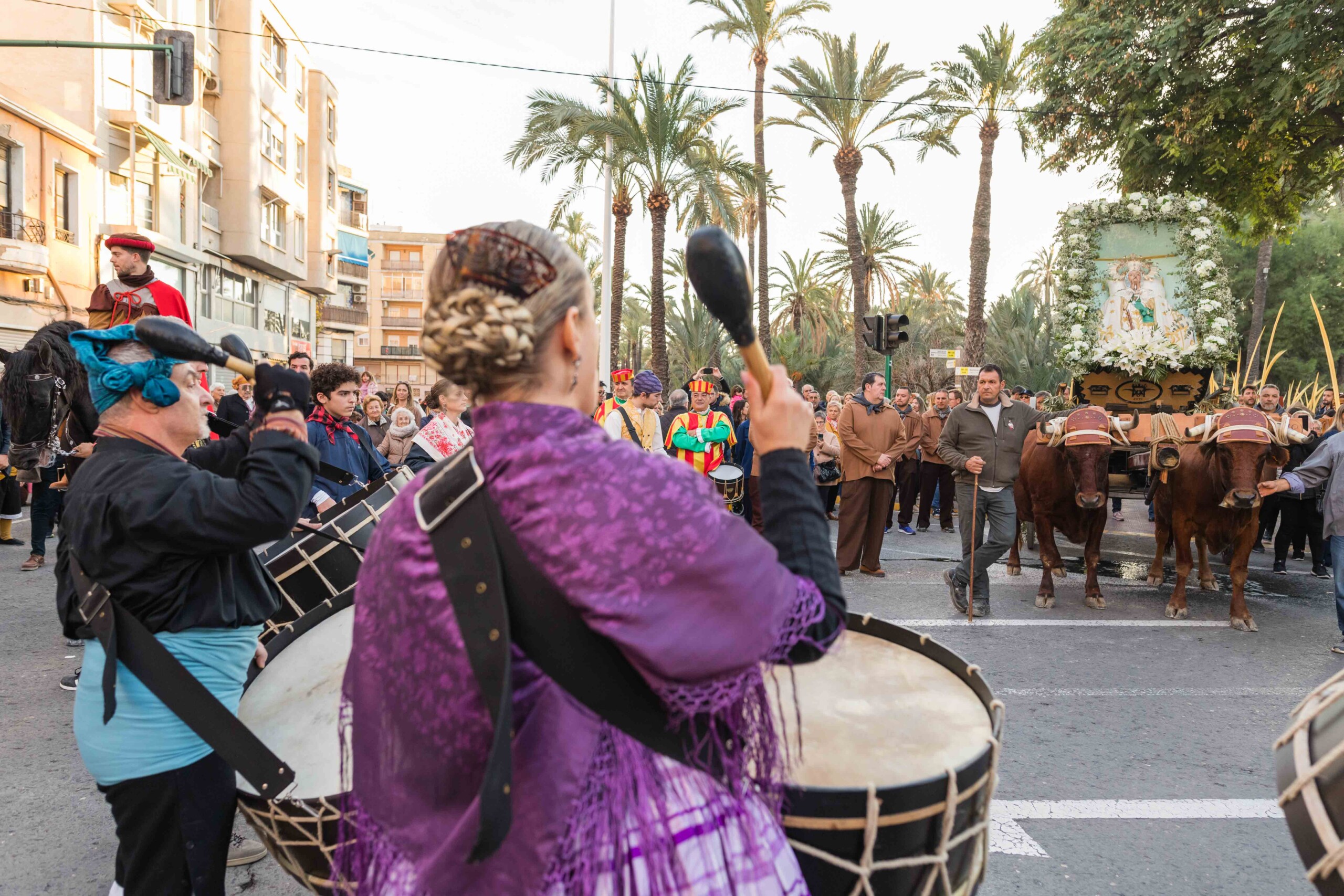 Después del brindis y la recepción oficial se ha leído el bando en el que se informaba a los ilicitanos e ilicitanas del feliz hallazgo de la Virgen, dando inicio a la romería por las calles de la ciudad al grito de ¡a la playa, ilicitanos!