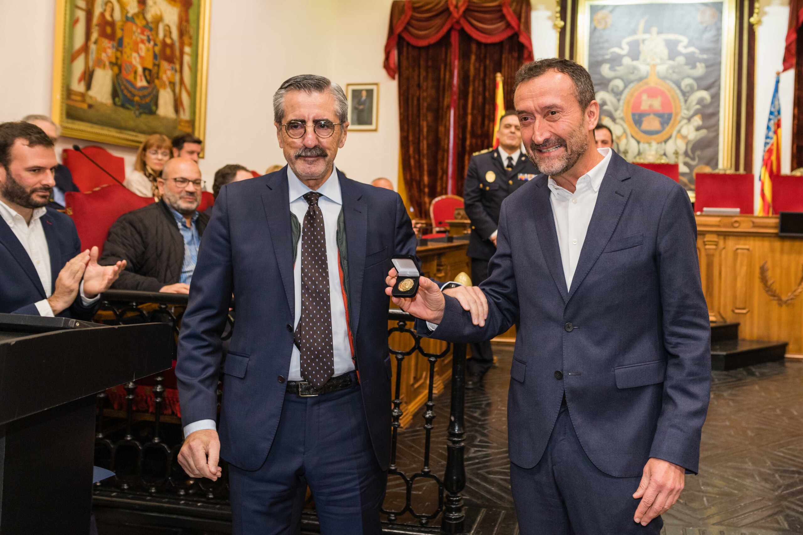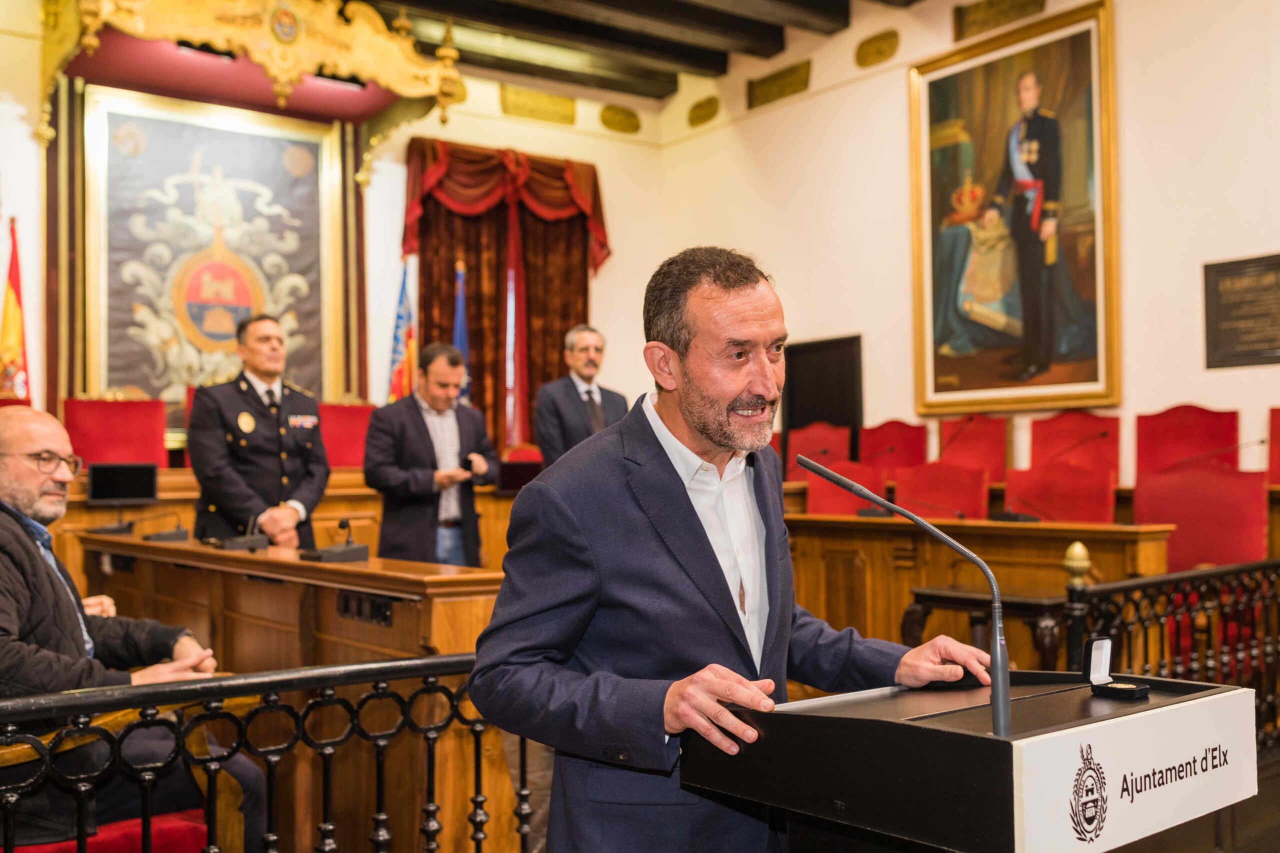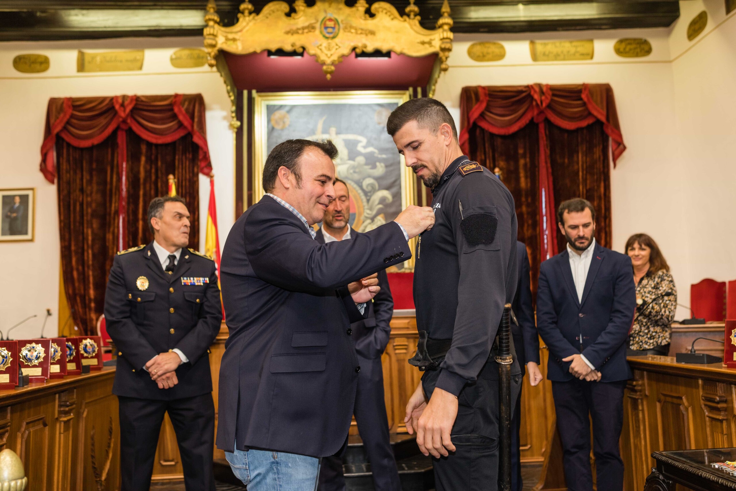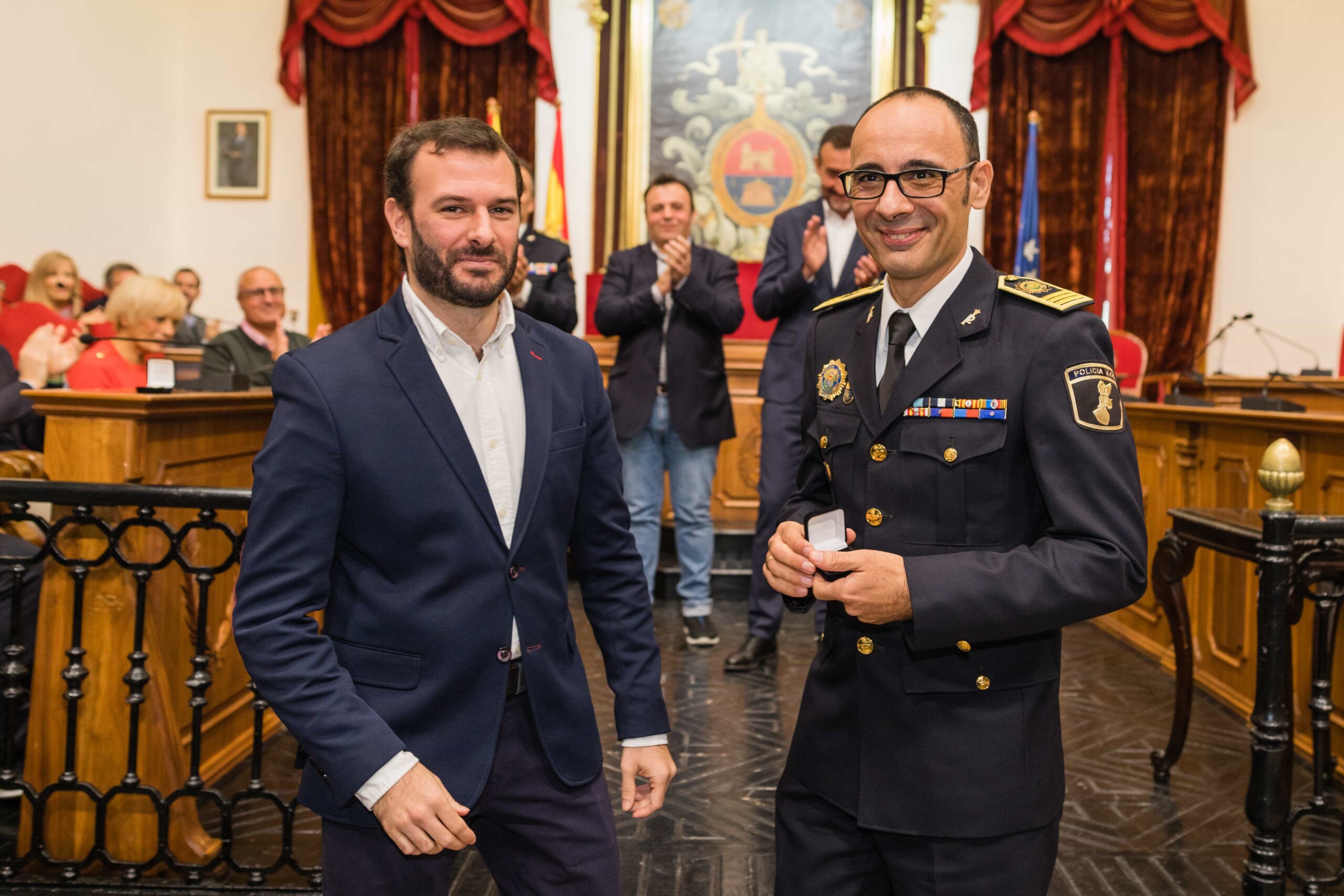 Sus nombres, Antonio Núñez Guijarro, Jorge Israel Agulló Sánchez, David Espinola Sánchez, Juan José Coves Alonso, Juan Carlos Buyolo Martínez, David Pomares Caballero, Antonio Mira Cayuelas, Alfonso Díaz Vielva, Raúl Soto Esclapez y Rafael Alemañ Alonso. El alcalde, Carlos González; el secretario autonómico de Seguridad y Emergencias, José María Ángel Batalla; el edil de Seguridad Ciudadana, Ramón Abad; el jefe de la Policía Local de Elche, César Zaragoza; y el director general de Operativa, Salvador Almenar, acompañados por miembros del Equipo de Gobierno y de la Corporación Municipal, les han hecho entrega de las cruces con Distinto Azul ante los aplausos de familiares y amigos.