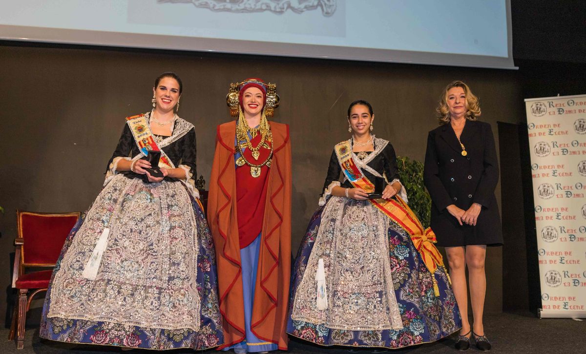 El propio Mazón recogió la Distinción de Honor de la Real Orden por el apoyo del Gobierno provincial al 125 aniversario del descubrimiento de la pieza, que ha dado pie a la muestra ‘La Dama Viajera’ –expuesta en el Museo Arqueológico y de Historia de Elche (MAHE) hasta el 30 de abril de 2023– y al convenio suscrito entre la Real Orden y la Fundación Comunidad Valenciana MARQ. A las reinas mayor e infantil, Alba Berenguer y Julia Moreno, se les entregó un colgante. Y a Paco Huertas se le otorgó el título de ‘Excelente de la Dama’ por su trayectoria de 32 años como miembro de la Real Orden, 25 de ellos en el cargo de secretario.