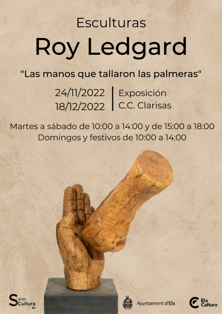 Información: se trata de 15 esculturas realizadas en madera de palmera. Exposición organizada con motivo del aniversario de la declaración del Palmeral d’ Elx como Patrimonio de la Humanidad.