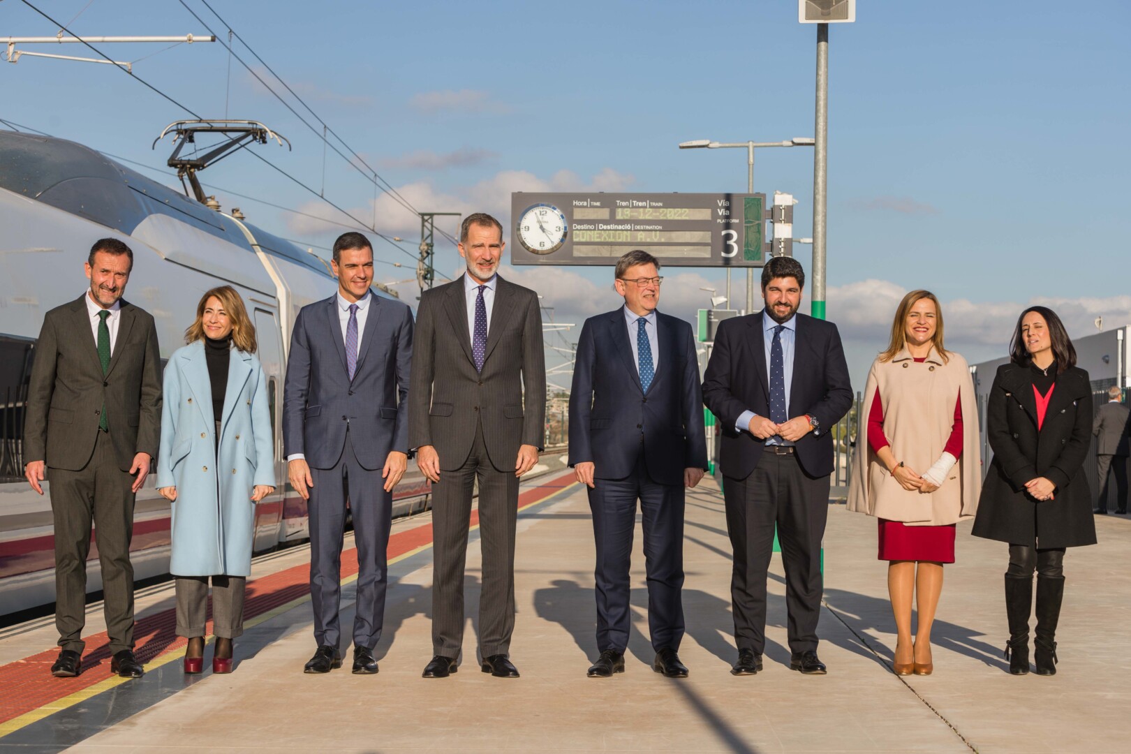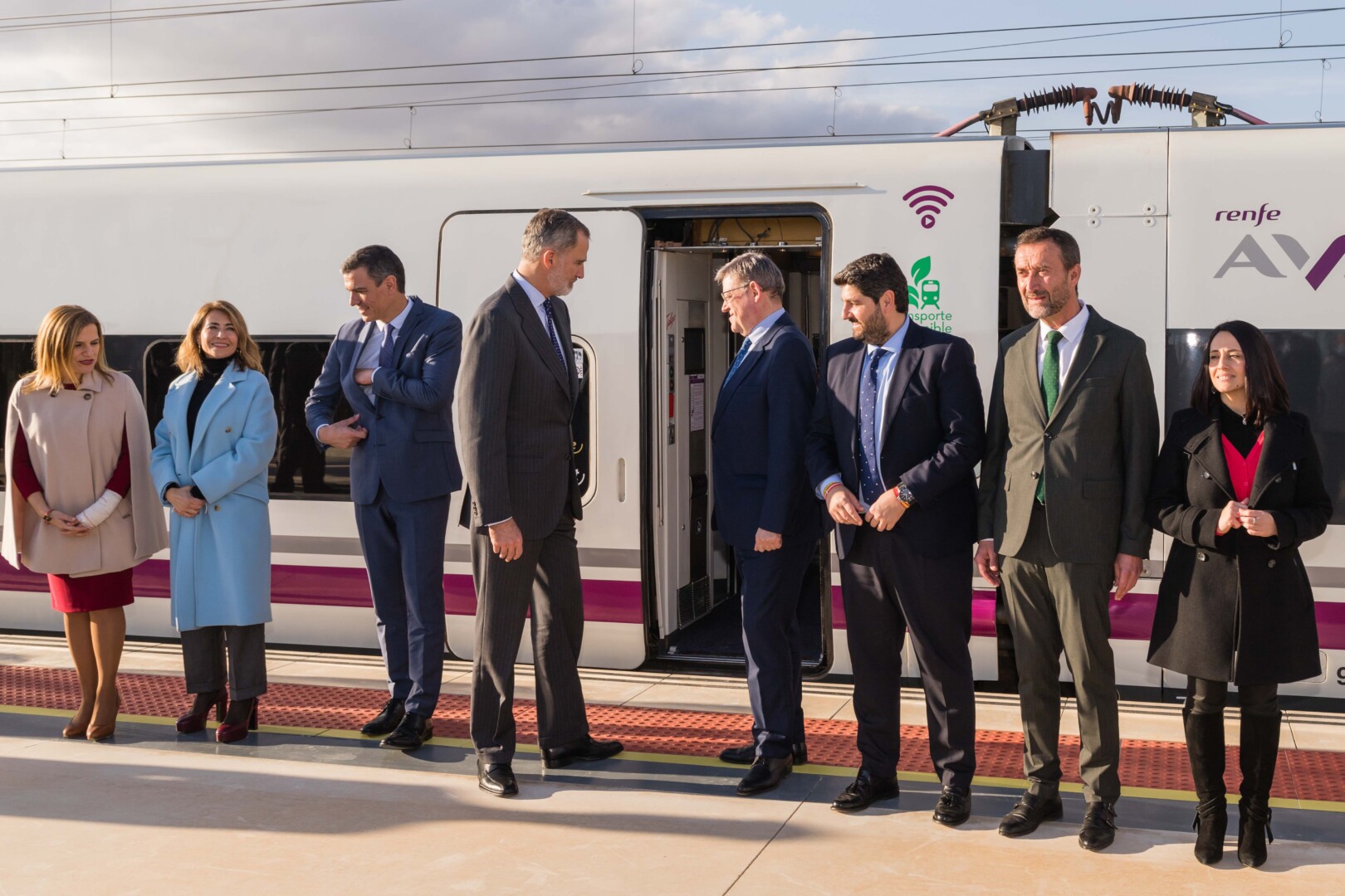 La línea ferroviaria de Alta Velocidad que unirá Madrid y Murcia en tan solo 2 horas y 45 minutos se ha inaugurado con un viaje en AVE que ha partido desde la estación madrileña de Chamartín con parada en Elche, donde el alcalde, Carlos González, ha saludado al Rey Felipe VI y al presidente del Gobierno, Pedro Sánchez, con quienes ha compartido el desplazamiento hasta Murcia.