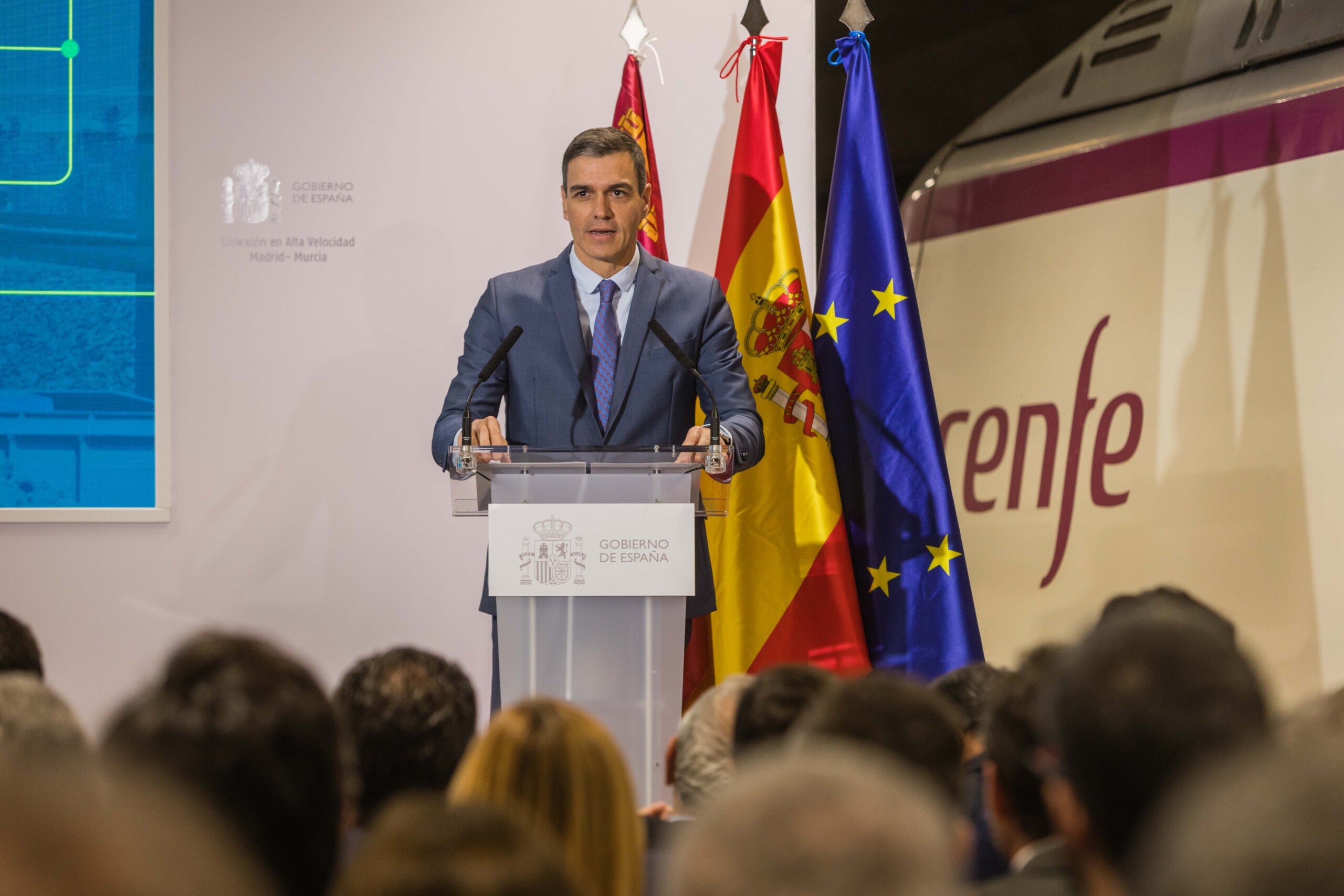 Sánchez hizo este anuncio durante su intervención en la inauguración de la línea de AVE Madrid-Murcia en la estación de la capital murciana, un acto que ha contado con la presencia del Rey Felipe VI, de la ministra de Transportes, Raquel Sánchez, del presidente de la Comunidad Valenciana, Ximo Puig, del presidente de la Región de Murcia, Fernando López Miras, y del alcalde de Elche, Carlos González, entre otras personalidades.