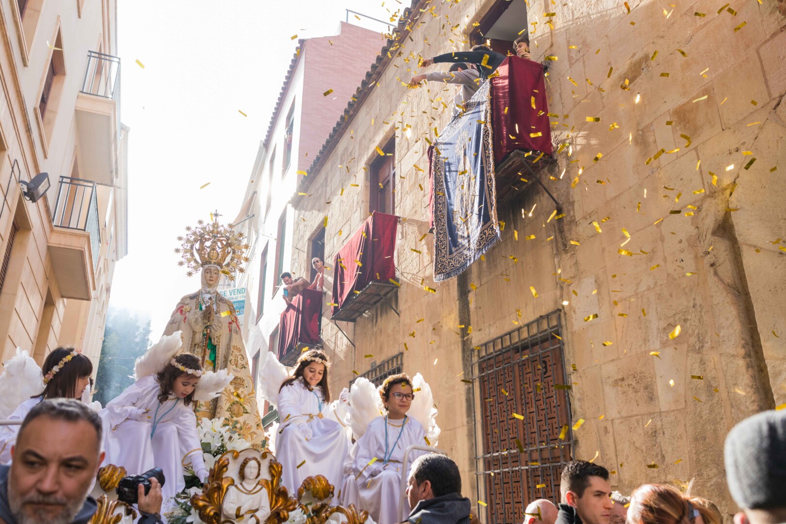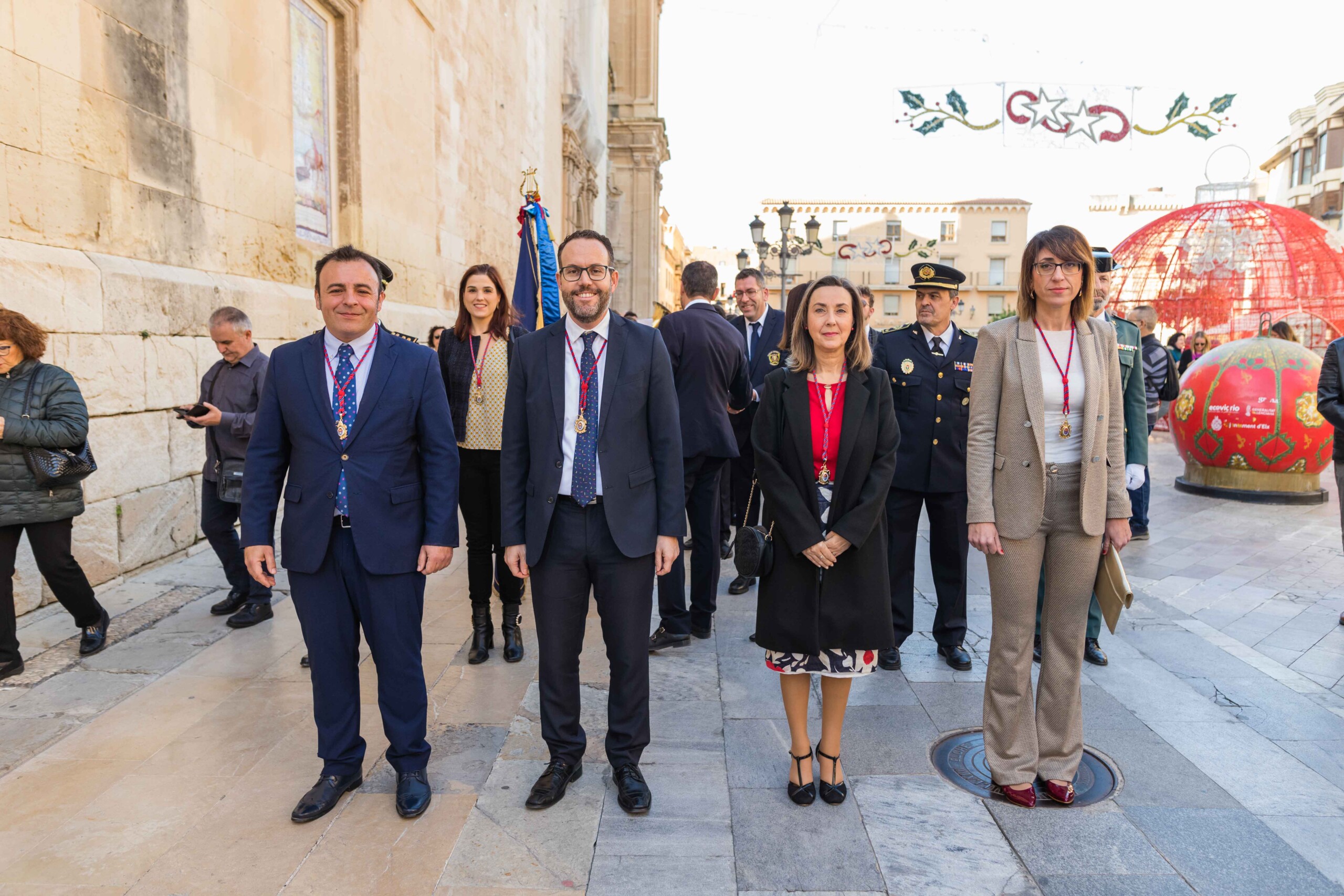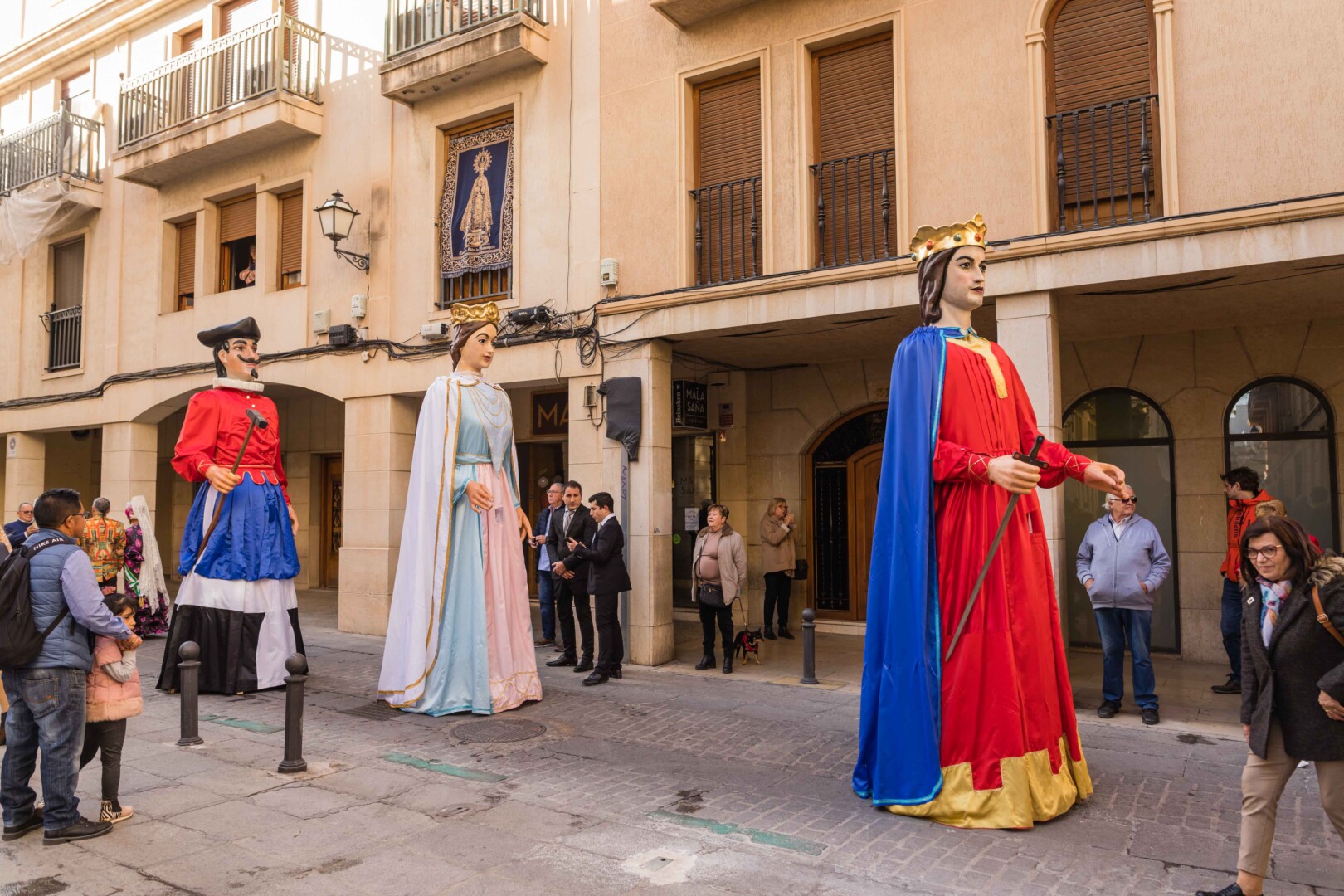 El alcalde, Carlos González; la edil del Fiestas, Mariola Galiana; el presidente de la Sociedad Venida de la Virgen, José Manuel Sabuco; Francesc Cantó interpretado por Iván Pomares, miembros del Equipo de Gobierno y de la Corporación Municipal, así como representantes de diferentes entidades festeras locales, autoridades religiosas, gigantes y cabezudos han acompañado a la Mare de Déu, siendo el momento más emotivo cuando se ha producido el encuentro entre las cuatro devociones y María en la Plaça de Baix, lo que ha arrancado la ovación del público.