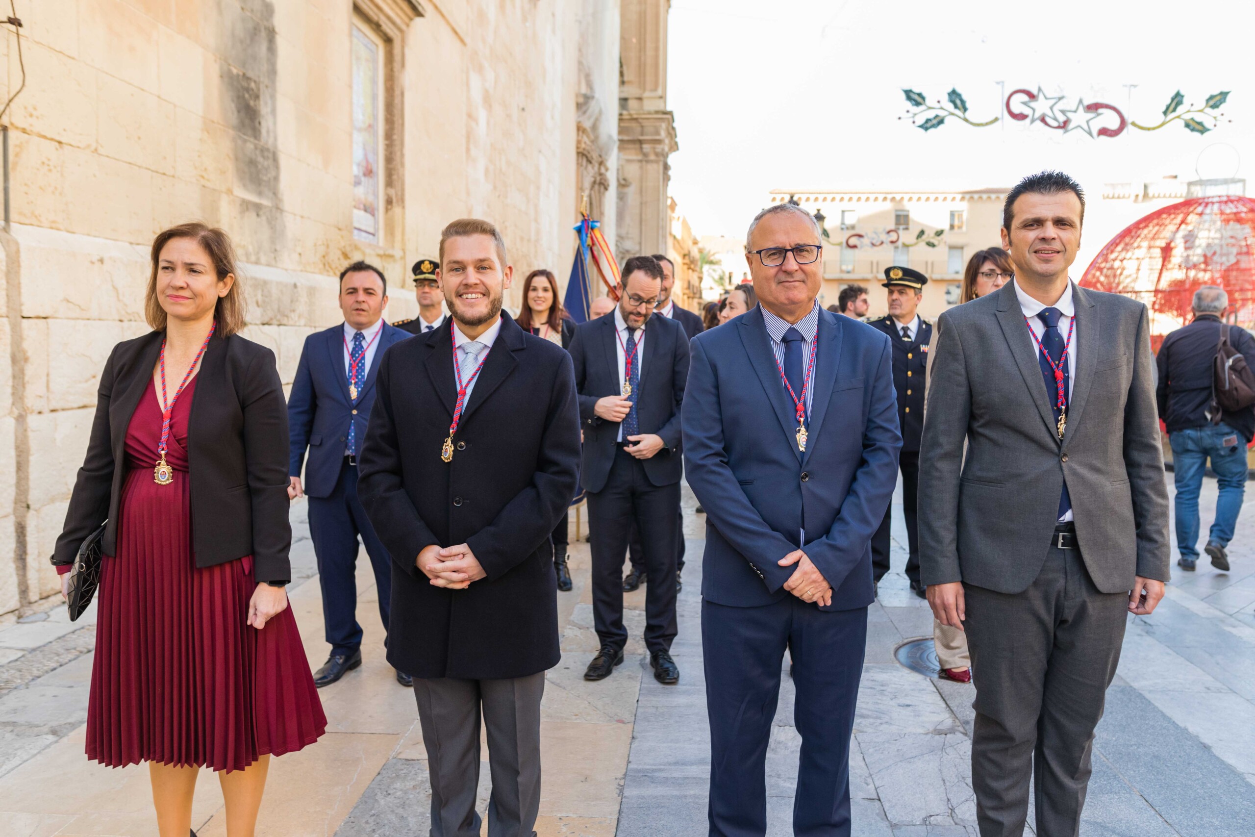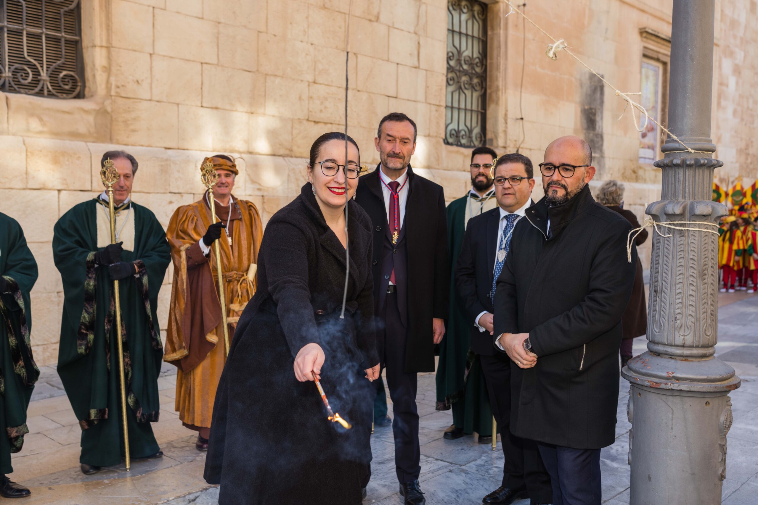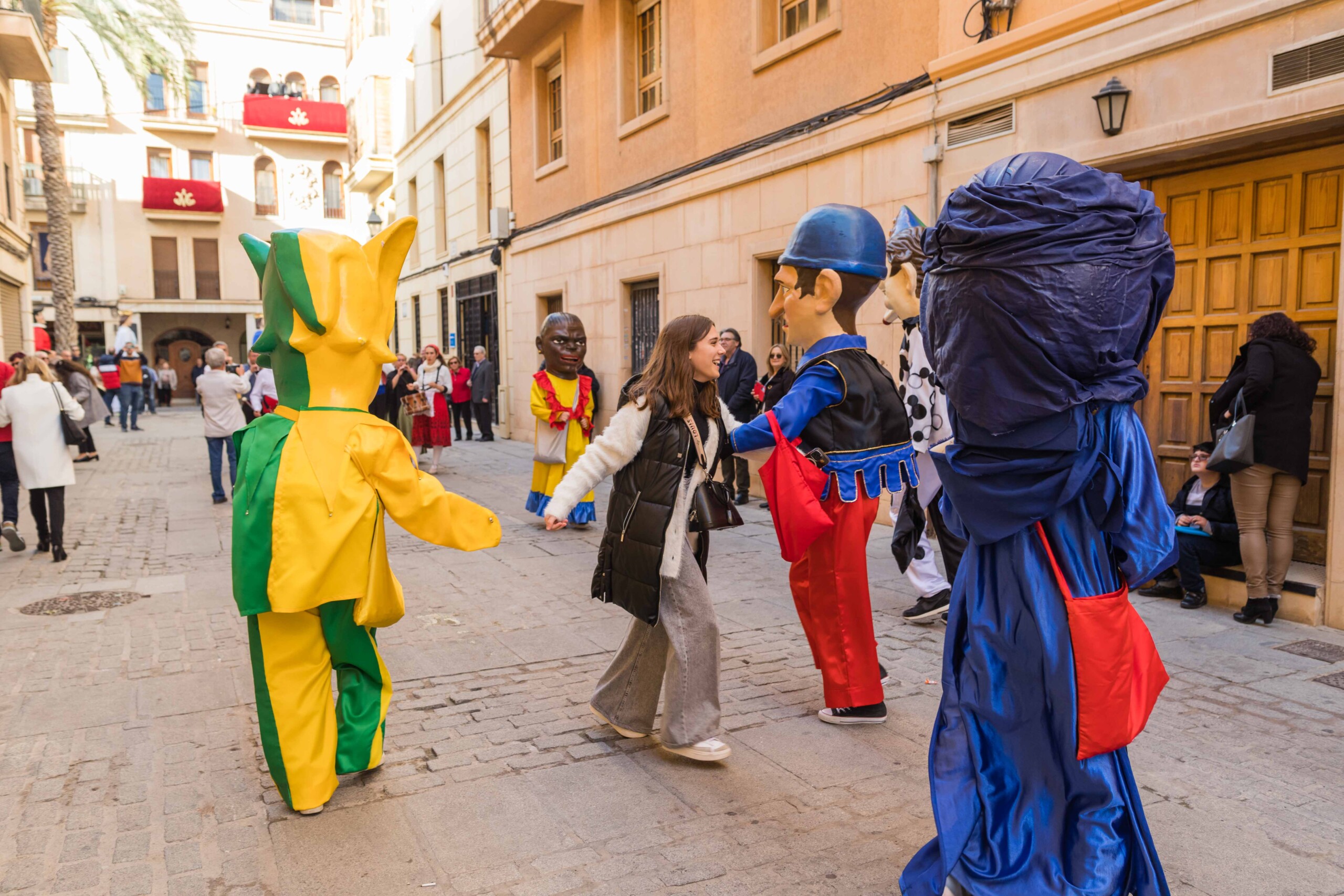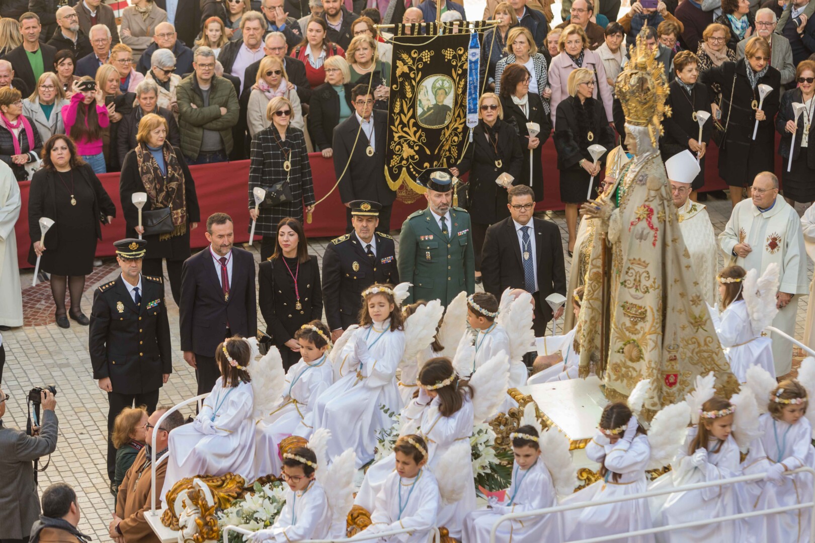 El alcalde, Carlos González; la edil del Fiestas, Mariola Galiana; el presidente de la Sociedad Venida de la Virgen, José Manuel Sabuco; Francesc Cantó interpretado por Iván Pomares, miembros del Equipo de Gobierno y de la Corporación Municipal, así como representantes de diferentes entidades festeras locales, autoridades religiosas, gigantes y cabezudos han acompañado a la Mare de Déu, siendo el momento más emotivo cuando se ha producido el encuentro entre las cuatro devociones y María en la Plaça de Baix, lo que ha arrancado la ovación del público.
