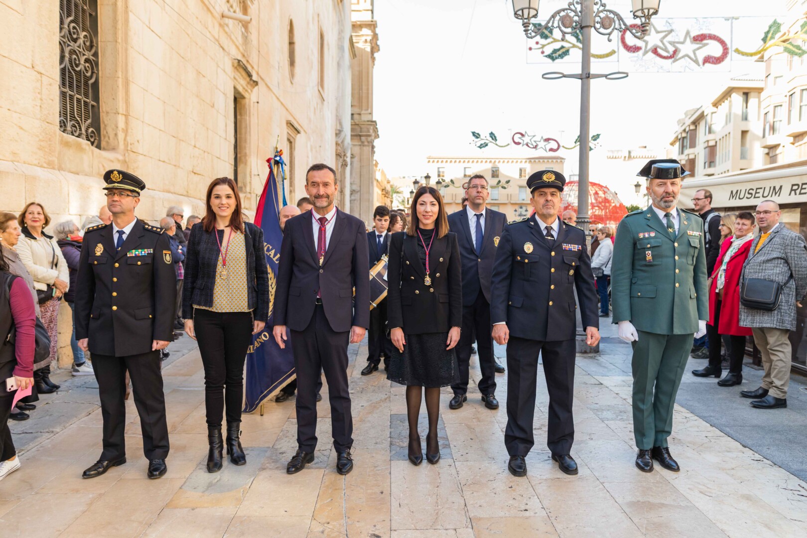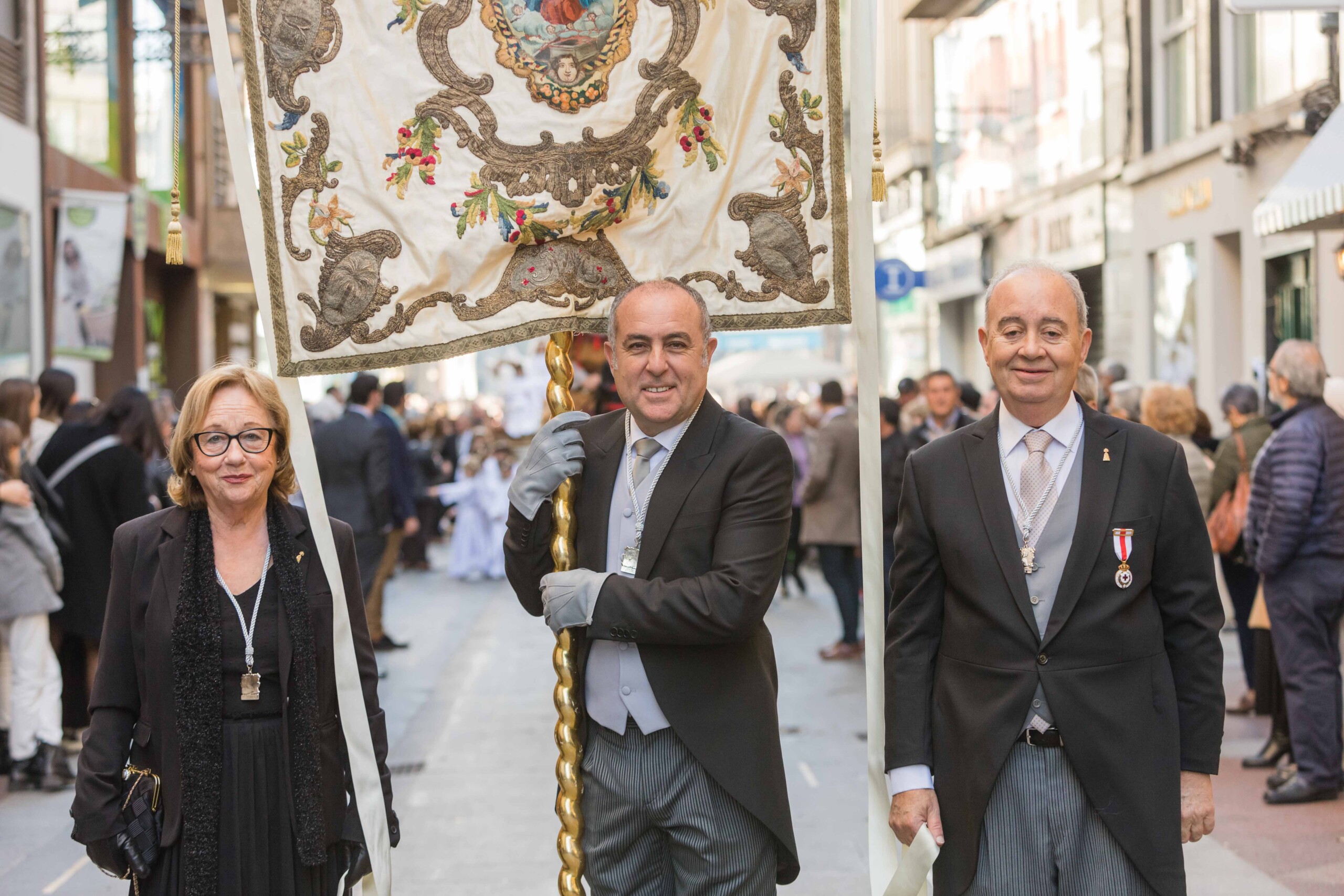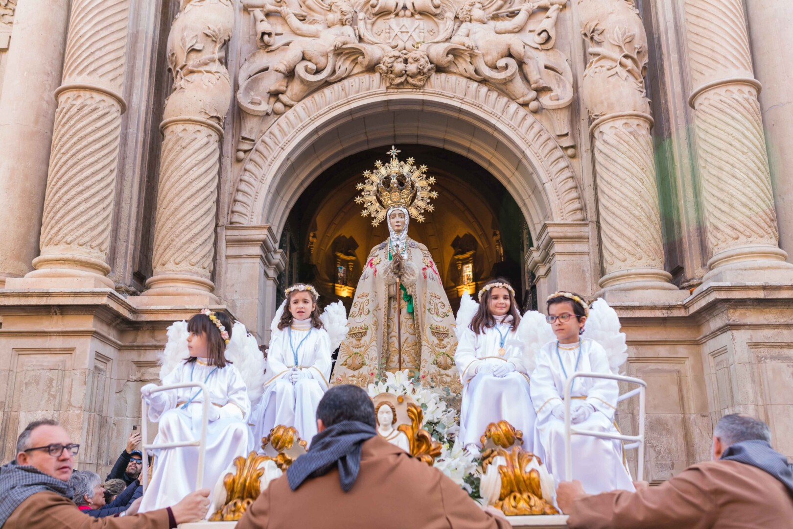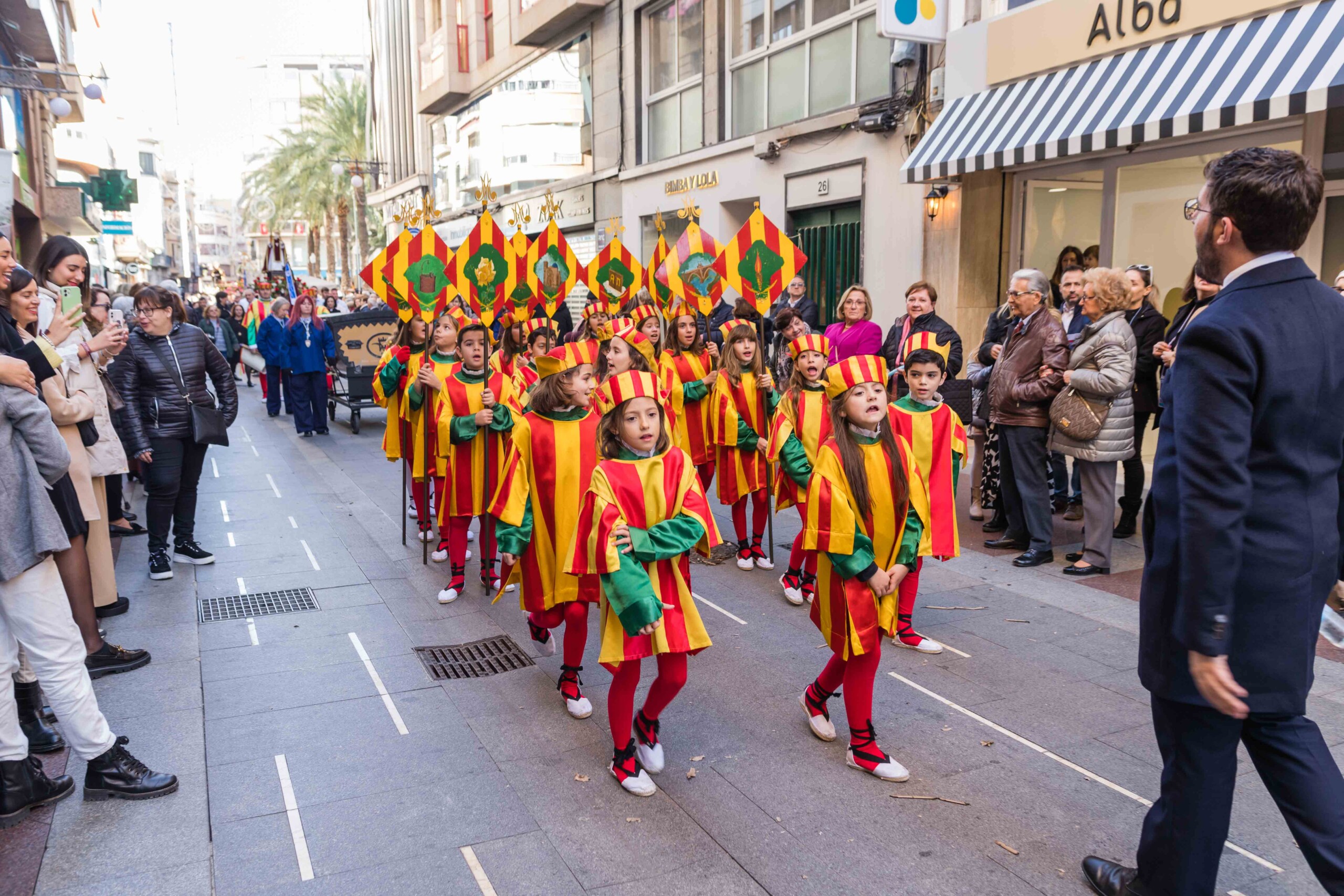 Los santos y la Patrona de Elche han desfilado por las calles del centro, en un recorrido iniciado a las 11:00 horas en la basílica de Santa María y que ha congregado a centenares de personas, las cuales han sido testigos del acontecimiento histórico que recuerda el 650 aniversario del feliz encuentro entre el guardacostas Francesc Cantó y la Virgen; una procesión conmemorativa que no pudo celebrase en 2020, año de la efeméride, por la emergencia sanitaria.