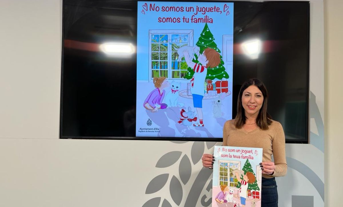 La Concejalía de Bienestar Animal impulsa un año más la campaña navideña para concienciar sobre el abandono de mascotas y fomentar su adopción bajo el lema “no somos un juguete, somos tu familia”. Tal como ha explicado la edil de Bienestar Animal, Mariola Galiana, desde el Ayuntamiento de Elche se busca apelar a la responsabilidad de la ciudadanía que tienen mascotas o están valorando incluir una en sus vidas, además de dar a conocer el balance anual de animales recogidos en el municipio.