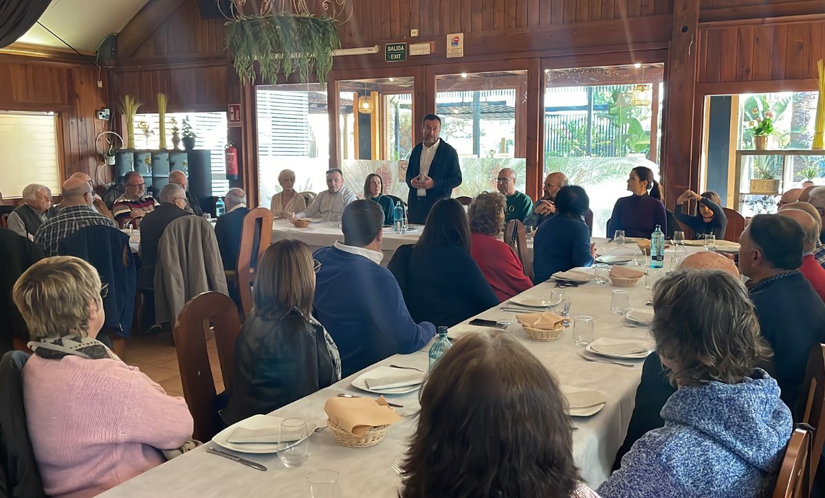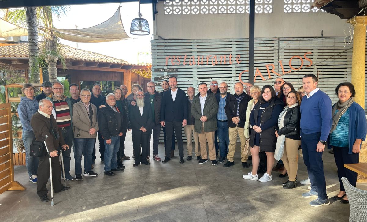 Carlos González trasladó a los a los 24 pedáneos y pedáneas que asistieron al almuerzo en el restaurante Carlos que en el primer trimestre de 2023 van a empezar muchas actuaciones importantes en la práctica totalidad de las pedanías de Elche con una inversión de unos cinco millones de euros.