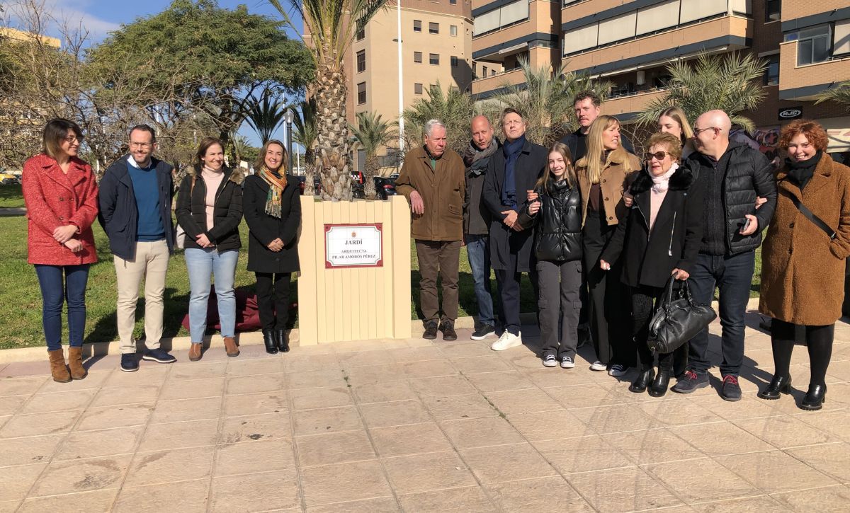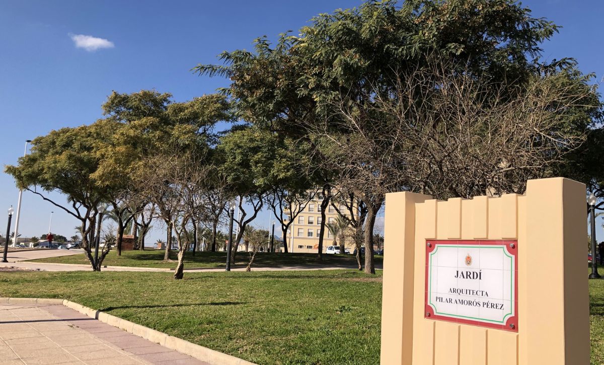 Pilar Amorós Pérez, la primera mujer arquitecta de la provincia de Alicante, cuenta desde este domingo 29 de enero con un espacio público dedicado en su Elche natal. Concretamente, un jardín de más de 3.300 metros cuadrados con frondoso arbolado, palmeras y juegos infantiles en la avenida de las Cortes Valencianas, junto al CEIP Julio María López Orozco, en el noroeste del casco urbano.