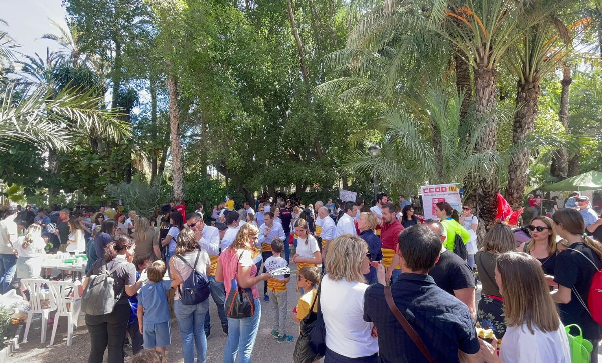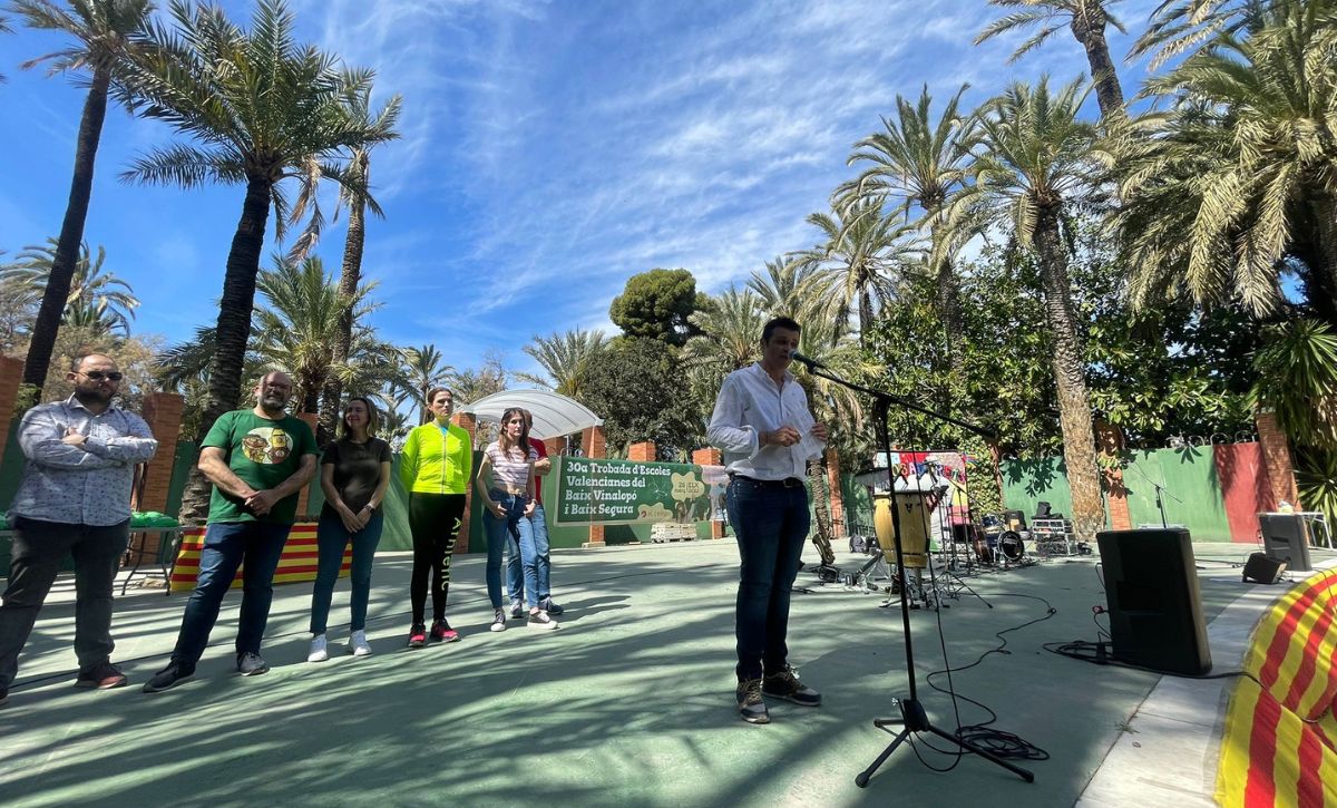Les Trobades d’Escoles Valencianes del Baix Vinalopó i Baix Segura han reunido a más de 4.500 personas en Elche, según los datos ofrecidos por L’Associació Cívica per la Llengua El Tempir, que han participado en los diferentes talleres que han tenido lugar en el Parque Municipal preparados por colegios e institutos de ambas comarcas con el objetivo reivindicar «el derecho de aprender en valenciano». El concejal de Promoción Lingüística, Carles Molina, la edil de Educación, María José Martínez, la edil de Cultura, Marga Antón, y miembros del Equipo de Gobierno han asistido al evento que ha continuado con la entrega de recordatorios a los centros educativos participantes en la Rotonda del Parque, donde también se ha leído el manifiesto bajo el título “Retrobem el valencià a l’escola”.