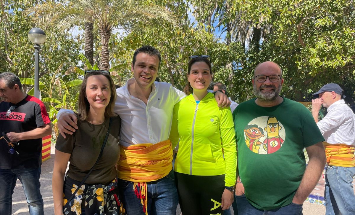 El concejal de Promoción Lingüística, Carles Molina, la edil de Educación, María José Martínez, la edil de Cultura, Marga Antón, y miembros del Equipo de Gobierno asisten al evento que ha continuado con la entrega de recordatorios a los centros educativos participantes en la Rotonda del Parque, donde también se ha leído el manifiesto