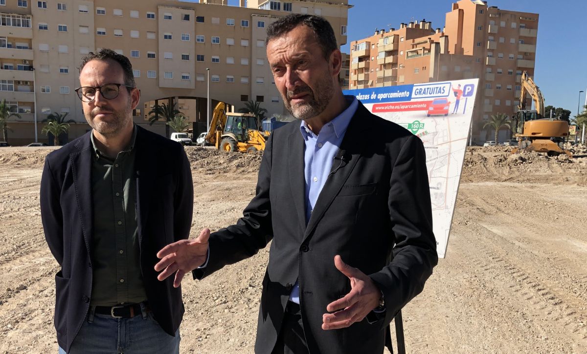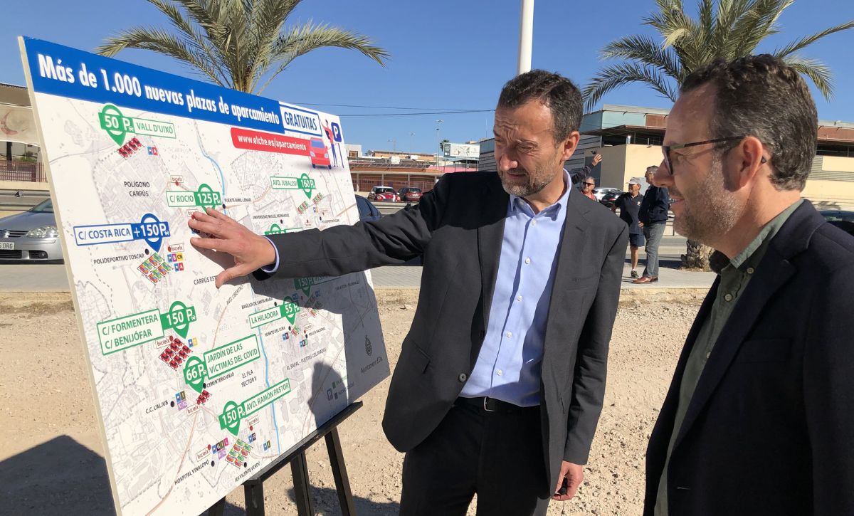 El alcalde, Carlos González, ha anunciado que el Ayuntamiento de Elche procederá a crear otras 1.000 plazas de aparcamiento gratuitas en diferentes puntos del casco urbano, que se añadirán al millar puestas en marcha durante los dos últimos meses. El regidor ilicitano, acompañado por el concejal de Mantenimiento y Modernización del Espacio Público, Héctor Díez, ha visitado las obras de acondicionamiento del solar de 8.000 metros cuadrados de la calle Costa Rica, en el Toscar, que entrará servicio en este mes de abril cuando finalicen los trabajos de nivelación y pavimentación del terreno e instalación de luminarias y señalética.