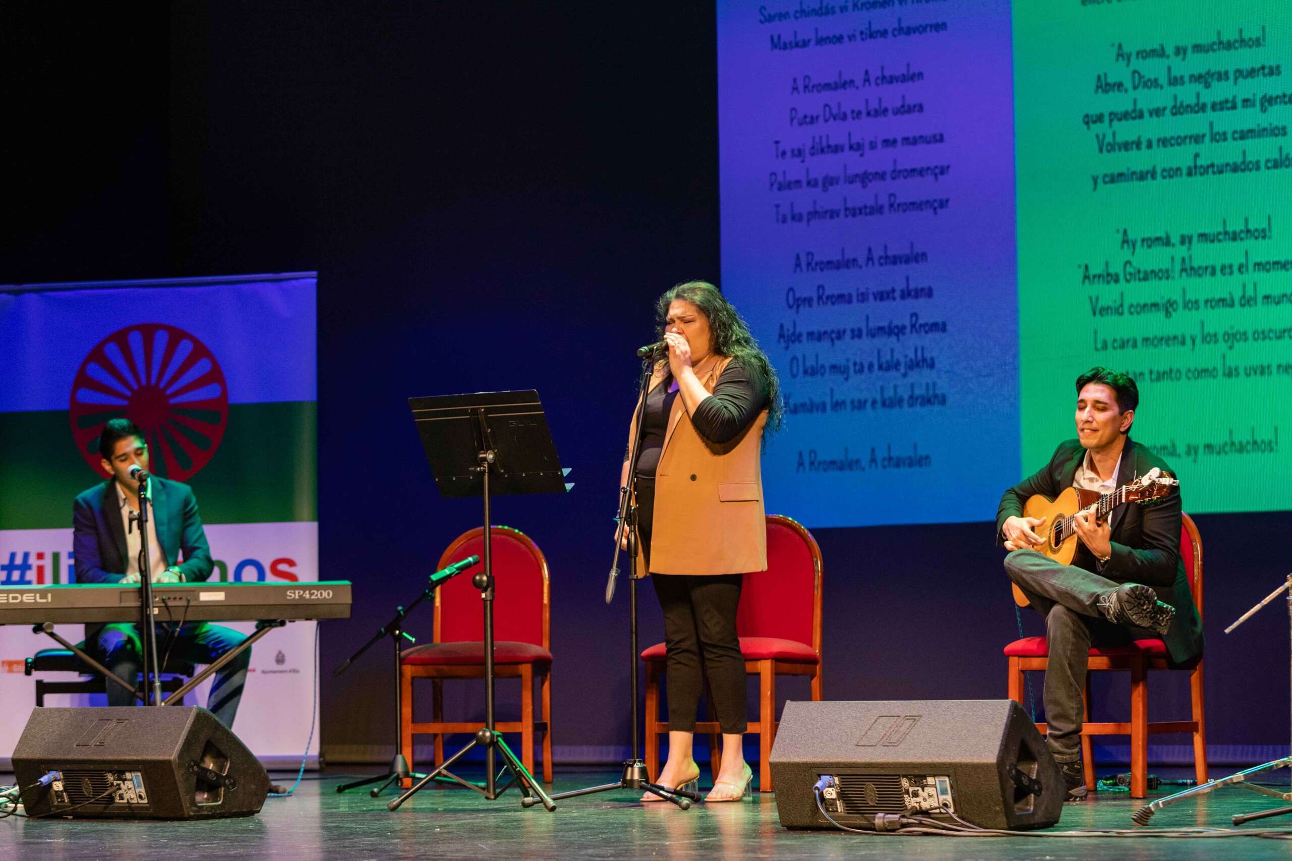 La interpretación en directo el Gelem Gelem –‘Anduve, Anduve’– por el conjunto musical Suspiros de Arte ha sido el momento más emotivo, que ha puesto en pie al Gran Teatro, junto a la Ceremonia del Río, que ha transcurrido en el Vinalopó y que ha consistido en arrojar pétalos al agua en homenaje a las víctimas gitanas del Holocausto y de otras acciones de odio contra la etnia, y de aquellos familiares que ya no están.