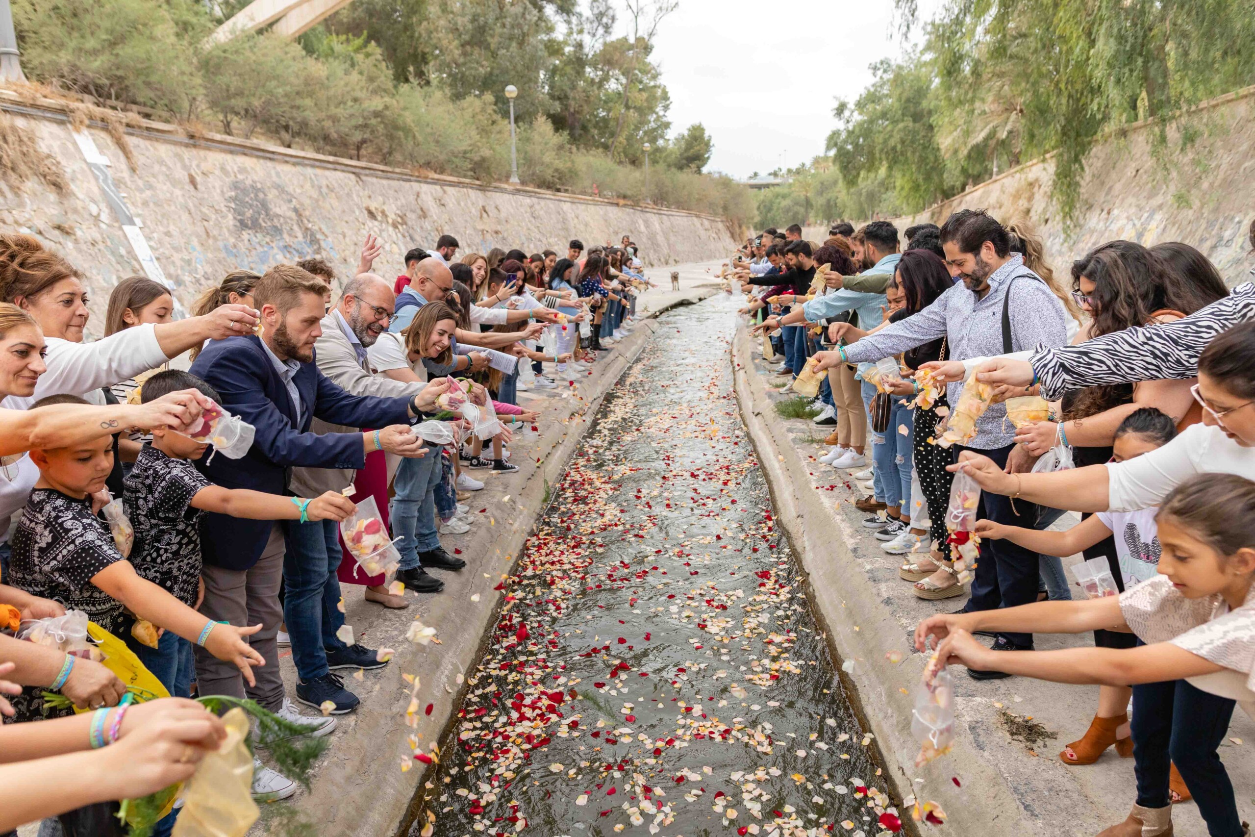 El alcalde, Carlos González, y el edil de Políticas Inclusivas, Mariano Valera, acompañados de miembros del Equipo de Gobierno y de la Corporación Municipal, así como de representantes de la comunidad calé ilicitana, participan en la cita que cuenta con lectura de manifiesto, actuaciones musicales y la Ceremonia del Río