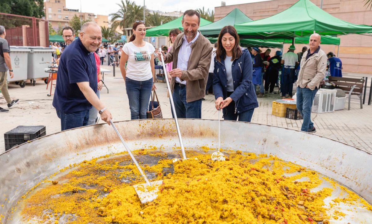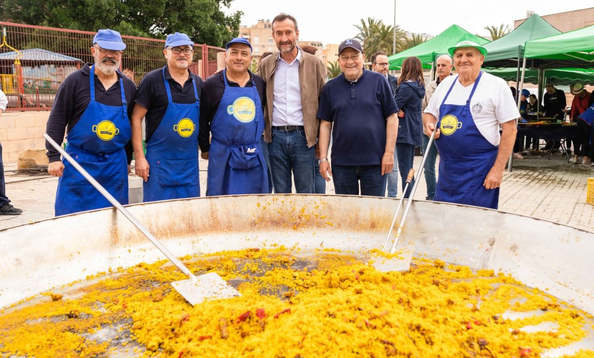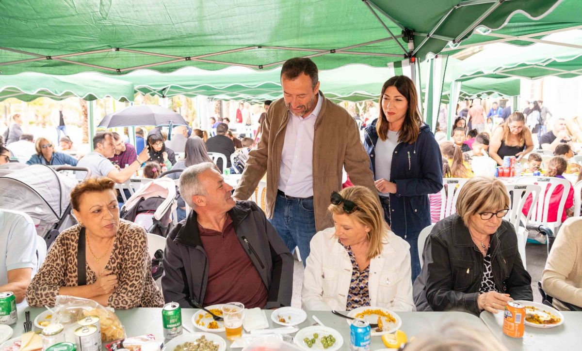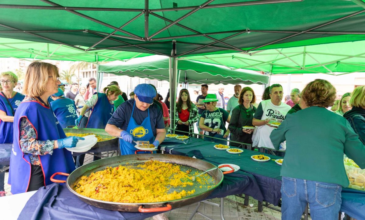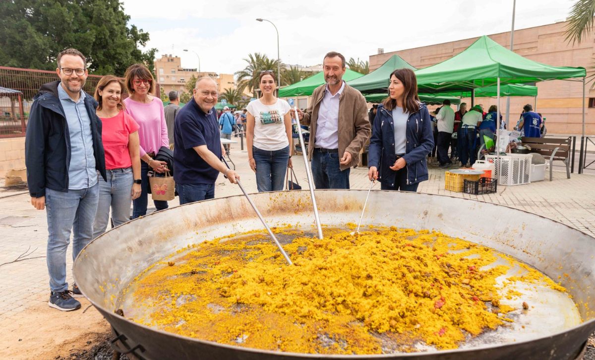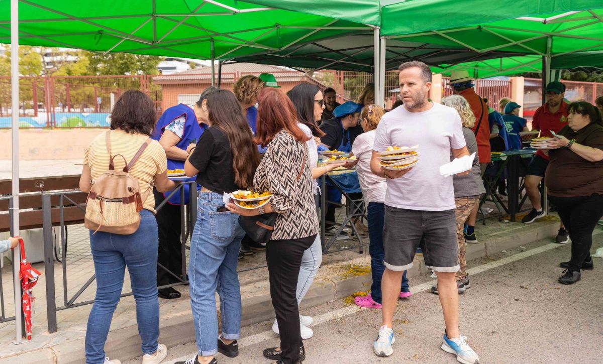 La parroquia Nuestra Señora de los Desamparados continúa de celebración con las fiestas en honor a su patrona en el barrio del Sector V. Pese a las previsiones de lluvia, más de 900 personas han participado en la paella solidaria que se ha llevado a cabo en las pistas de El Pla a cargo de las Comisiones de Fiestas y Asociación de Comerciantes del Sector V, en colaboración del Ayuntamiento de Elche y diferentes entidades, a beneficio de Cáritas que lo destinará a los diferentes proyectos sociales que desarrolla. El precio del plato de arroz y bebida ha sido de cuatro euros. Al encuentro ha acudido el alcalde, Carlos González, la concejala de Fiestas, Mariola Galiana, miembros del Equipo de Gobierno y de la Corporación Municipal.