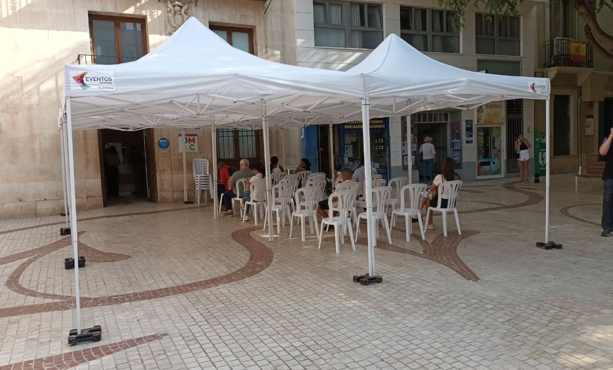 El Ayuntamiento ha instalado sillas y carpas en las Oficinas Municipales de Atención al Ciudadano (OMAC) en la Plaza de Baix y en la Plaza de Francesc Cantó. Según ha declarado el alcalde, Pablo Ruz, “se trata de aliviar la espera a las personas que están haciendo la cola por necesidad. No es una medida extraordinaria, es un deber moral”.