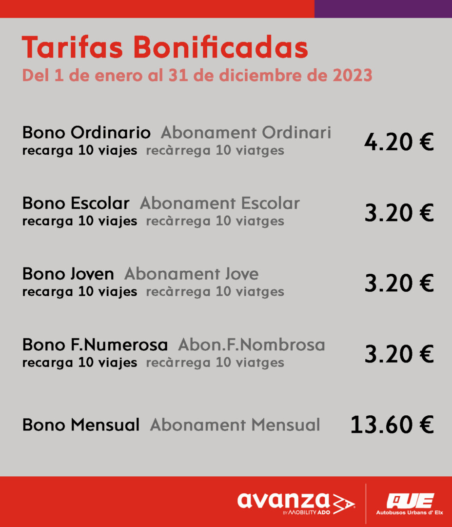 El descuento del bono transporte para los autobuses urbanos de Elche se prorroga hasta el 31 de diciembre, y se mantendrá la reducción del 50% sobre el precio vigente.