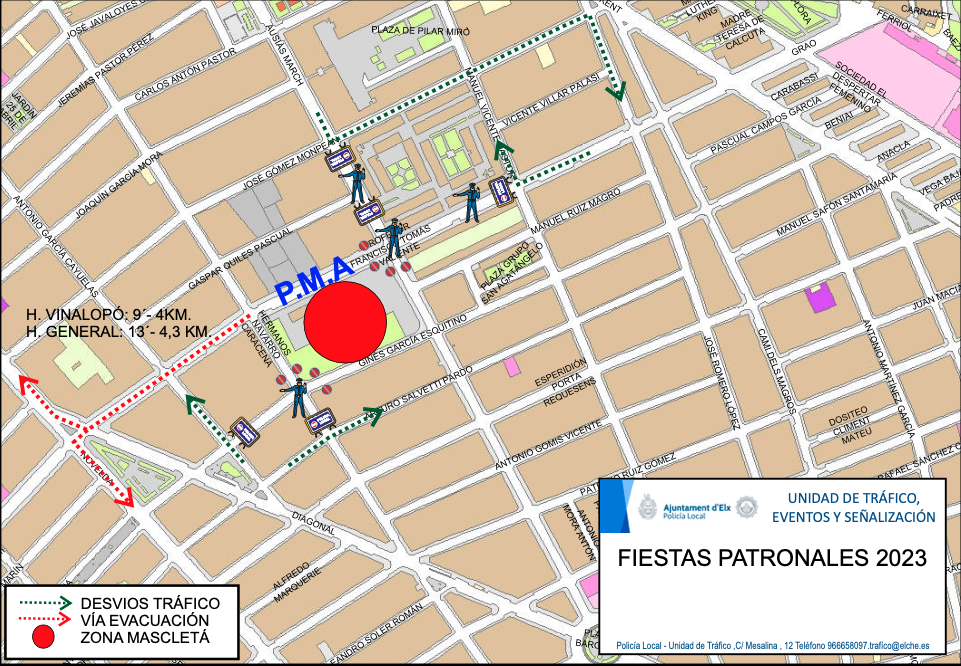 – Hacia la zona de influencia a partir de las 23:00, estos es, Ginés García Esquitino con Hermanos Navarro Caracena, Profesor Tomás y Valiente con Manuel Vicente Pastor y Avda. Ausias March con José Gómez Mompeán.
