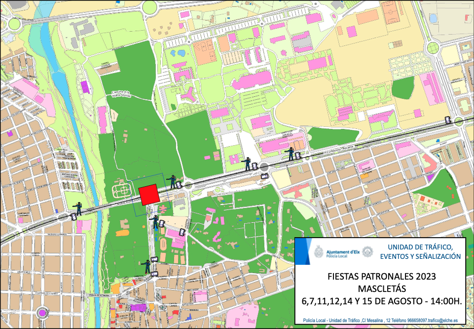 El tráfico se abrirá una vez quede limpia la zona de restos de artificios pirotécnicos, salvo los días 11, 12 y 13 de agosto que no se abrirá el tráfico hasta que sean lanzadas las mascletás nocturnas, la Nit de l’Álba y se limpien los restos